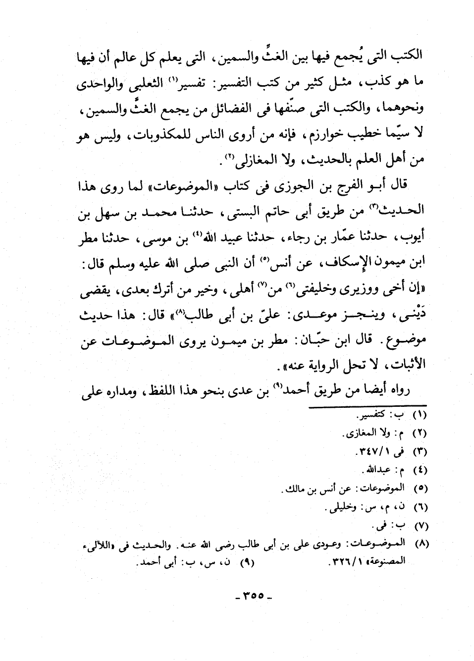 الْكُتُبِ الَّتِي يُجْمَعُ فِيهَا بَيْنَ الْغَثِّ وَالسَّمِينِ، الَّتِي يَعْلَمُ كُلُّ عَالِمٍ أَنَّ فِيهَا مَا هُوَ كَذِبٌ مِثْلُ كَثِيرٍ مِنْ كُتُبِ التَّفْسِيرِ: تَفْسِيرُ (¬1) الثَّعْلَبِيِّ، وَالْوَاحِدِيِّ، وَنَحْوِهِمَا، وَالْكُتُبِ الَّتِي صَنَّفَهَا فِي الْفَضَائِلِ مَنْ يَجْمَعُ الْغَثَّ وَالسَّمِينَ لَا سِيَّمَا خَطِيبُ خُوَارَزْمَ، فَإِنَّهُ مِنْ أَرَوَى النَّاسِ لِلْمَكْذُوبَاتِ، وَلَيْسَ هُوَ مِنْ أَهْلِ الْعِلْمِ بِالْحَدِيثِ، وَلَا الْمَغَازِلِيُّ (¬2) .