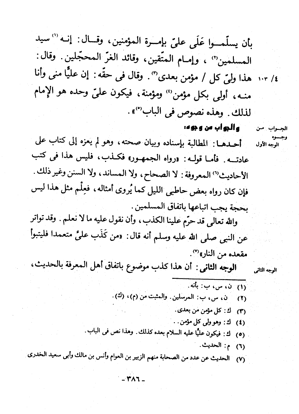 (¬5) ك: فَيَكُونُ عَلِيٌّ عَلَيْهِ السَّلَامُ بَعْدَهُ كَذَلِكَ. وَهَذَا نَصٌّ فِي الْبَابِ