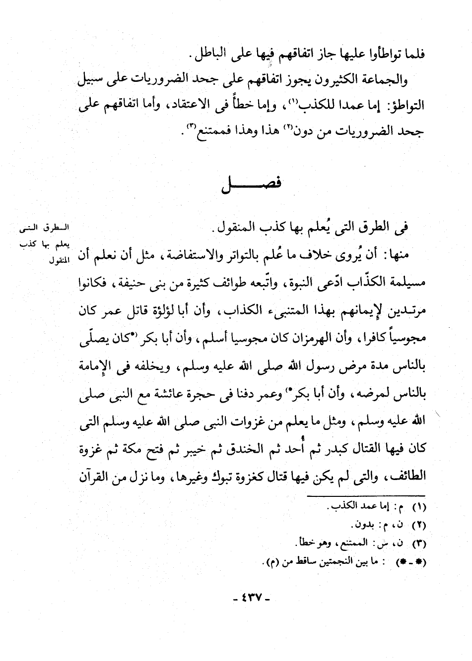 فِي الطُّرُقِ الَّتِي يُعْلَمُ بِهَا كَذِبُ الْمَنْقُولِ.