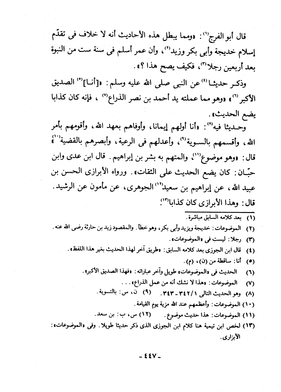 (¬13) 13) لَخَّصَ ابْنُ تَيْمِيَةَ هُنَا كَلَامَ ابْنِ الْجَوْزِيِّ الَّذِي ذَكَرَ حَدِيثًا طَوِيلًا. وَفِي " الْمَوْضُوعَاتِ ": الْأَبْزَارِيُّ