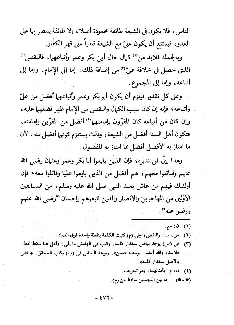وَبِالْجُمْلَةِ فَلَا بُدَّ مِنْ (¬1) كَمَالِ حَالِ أَبِي بَكْرٍ وَعُمَرَ وَأَتْبَاعِهِمَا، فَالنَّقْصُ (¬2) الَّذِي حَصَلَ فِي خِلَافَةِ عَلِيٍّ (¬3) مِنْ إِضَافَةِ ذَلِكَ إِمَّا إِلَى الْإِمَامِ، وَإِمَّا إِلَى أَتْبَاعِهِ، وَإِمَّا إِلَى الْمَجْمُوعِ.