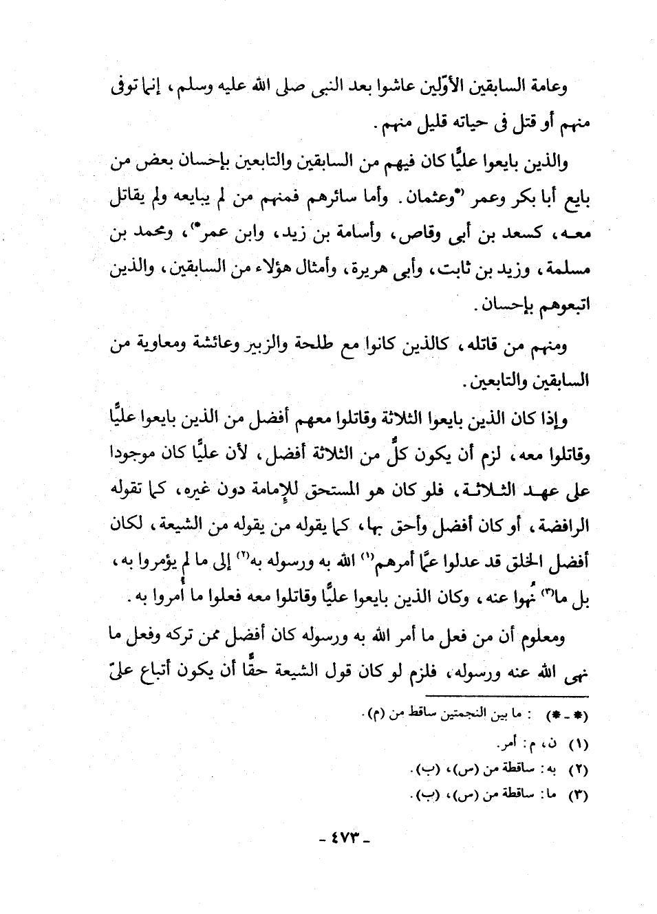 وَعَامَّةُ السَّابِقِينَ الْأَوَّلِينَ عَاشُوا بَعْدَ النَّبِيِّ صَلَّى اللَّهُ عَلَيْهِ وَسَلَّمَ، إِنَّمَا تُوُفِّيَ مِنْهُمْ أَوْ قُتِلَ فِي حَيَاتِهِ قَلِيلٌ مِنْهُمْ.