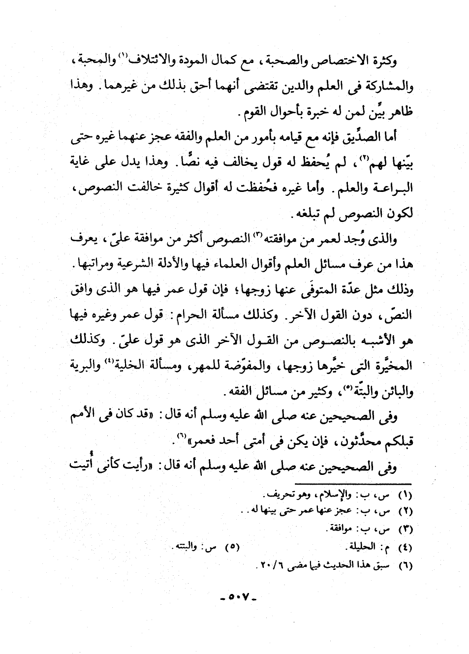 وَالَّذِي وُجِدَ لِعُمَرَ مِنْ مُوَافَقَتِهِ (¬3) النُّصُوصَ أَكْثَرُ مِنْ مُوَافَقَةِ عَلِيٍّ، يَعْرِفُ هَذَا مَنْ عَرَفَ مَسَائِلَ الْعِلْمِ، وَأَقْوَالَ الْعُلَمَاءِ فِيهَا، وَالْأَدِلَّةَ الشَّرْعِيَّةَ، وَمَرَاتِبَهَا، وَذَلِكَ مِثْلُ عِدَّةِ الْمُتَوَفَّى عَنْهَا زَوْجُهَا، فَإِنَّ قَوْلَ عُمَرَ فِيهَا هُوَ الَّذِي وَافَقَ النَّصَّ دُونَ الْقَوْلِ الْآخَرِ، وَكَذَلِكَ مَسْأَلَةُ الْحَرَامِ: قَوْلُ عُمَرَ وَغَيْرِهِ فِيهَا هُوَ الْأَشْبَهُ بِالنُّصُوصِ مِنَ الْقَوْلِ الْآخَرِ الَّذِي هُوَ قَوْلُ عَلِيٍّ، وَكَذَلِكَ الْمُخَيَّرَةُ الَّتِي خَيَّرَهَا زَوْجُهَا، وَالْمُفَوَّضَةُ لِلْمَهْرِ، وَمَسْأَلَةُ الْخَلِيَّةِ (¬4) ، وَالْبَرِيَّةِ، وَالْبَائِنِ، وَالْبَتَّةِ (¬5) ، وَكَثِيرٌ مِنْ مَسَائِلِ الْفِقْهِ.