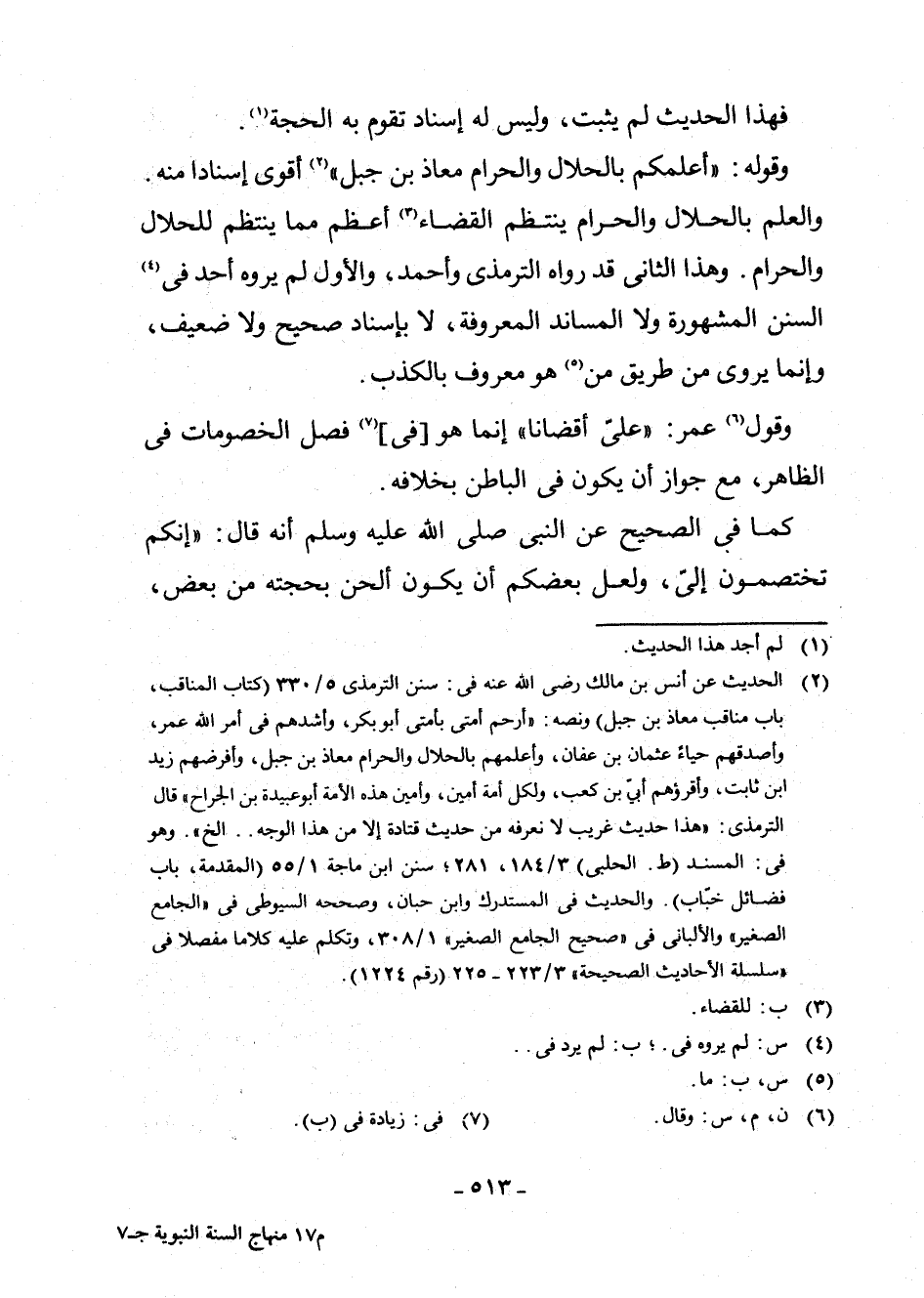 وَقَوْلُهُ: " «أَعْلَمُكُمْ بِالْحَلَالِ وَالْحَرَامِ مُعَاذُ بْنُ جَبَلٍ» " (¬2) .