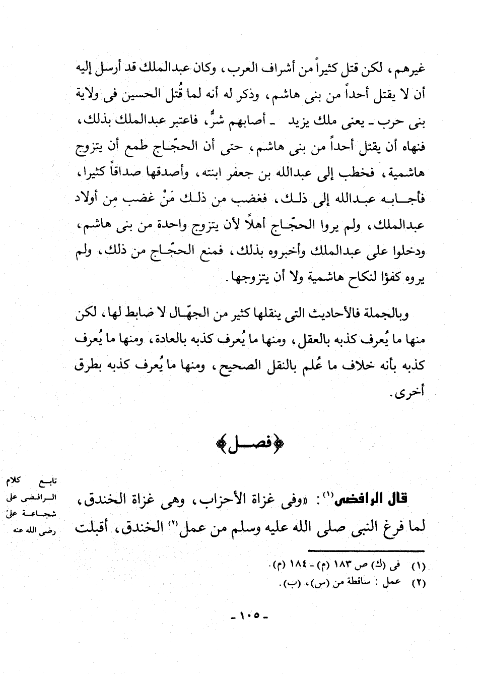 [فصل كلام الرافضي وَفِي غَزَاةِ الْأَحْزَابِ والرد عليه]
