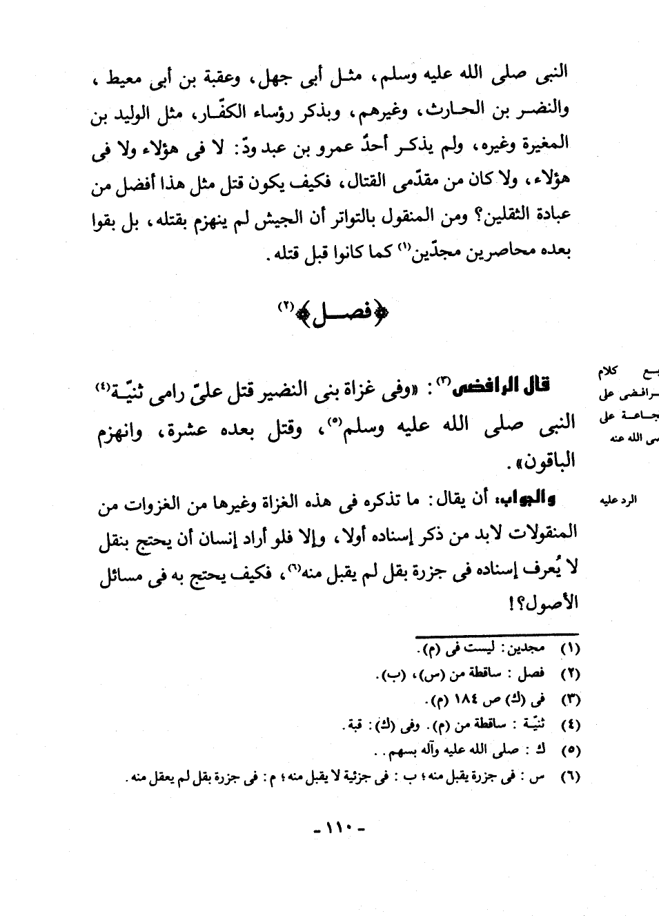 وَالْجَوَابُ: أَنْ يُقَالَ: مَا تَذْكُرُهُ فِي هَذِهِ الْغَزَاةِ وَغَيْرِهَا مِنَ الْغَزَوَاتِ مِنَ الْمَنْقُولَاتِ لَا بُدَّ مِنْ ذِكْرِ إِسْنَادِهِ أَوَّلًا، وَإِلَّا فَلَوْ أَرَادَ إِنْسَانٌ أَنْ يَحْتَجَّ بِنَقْلٍ لَا يُعْرَفُ إِسْنَادُهُ فِي جَزَرَةِ بَقْلٍ لَمْ يُقْبَلْ مِنْهُ (¬6) ، فَكَيْفَ يَحْتَجُّ بِهِ فِي مَسَائِلِ الْأُصُولِ؟ !