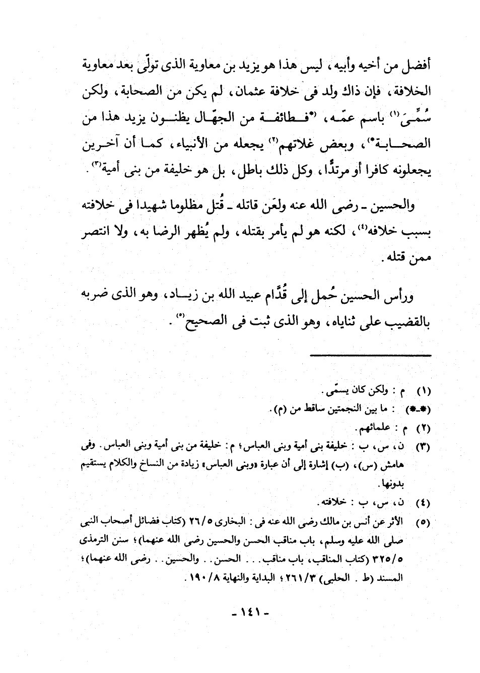 (¬4) ن، س، ب: خَلِيفَةُ بَنِي أُمَيَّةَ وَبَنِي الْعَبَّاسِ، م: خَلِيفَةٌ مِنْ بَنِي أُمَيَّةَ وَبَنِي الْعَبَّاسِ. وَفِي هَامِشِ (س) ، (ب) إِشَارَةٌ إِلَى أَنَّ عِبَارَةَ " وَبَنِي الْعَبَّاسِ " زِيَادَةٌ مِنَ النُّسَّاخِ وَالْكَلَامُ يَسْتَقِيمُ بِدُونِهَا.