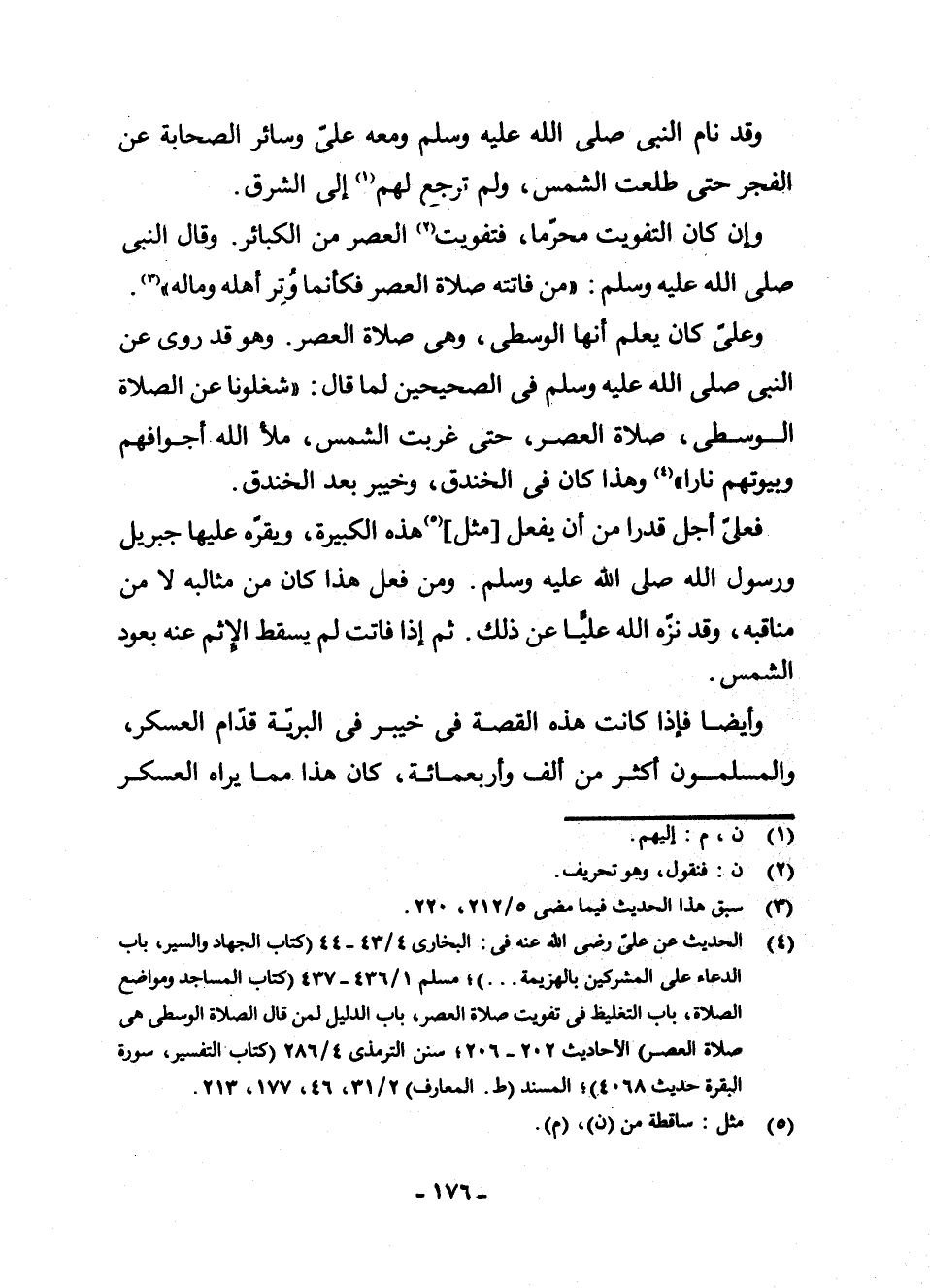 (¬4) الْحَدِيثُ عَنْ عَلِيٍّ - رَضِيَ اللَّهُ عَنْهُ - فِي: الْبُخَارِيِّ 4/43 - 44 (كِتَابُ الْجِهَادِ وَالسِّيَرِ، بَابُ الدُّعَاءِ عَلَى الْمُشْرِكِينَ بِالْهَزِيمَةِ. . .) مُسْلِمٍ 1/436 - 437 (كِتَابُ الْمَسَاجِدِ وَمَوَاضِعِ الصَّلَاةِ، بَابُ التَّغْلِيظِ فِي تَفْوِيتِ صَلَاةِ الْعَصْرِ، بَابُ الدَّلِيلِ لِمَنْ قَالَ: الصَّلَاةُ الْوُسْطَى هِيَ صَلَاةُ الْعَصْرِ) الْأَحَادِيثُ 202 - 206 سُنَنِ التِّرْمِذِيِّ 4/286 (كِتَابُ التَّفْسِيرِ، سُورَةُ الْبَقَرَةِ حَدِيثٌ 4068) ، الْمُسْنَدِ (ط. الْمَعَارِفِ) 2/31، 46، 177، 213.