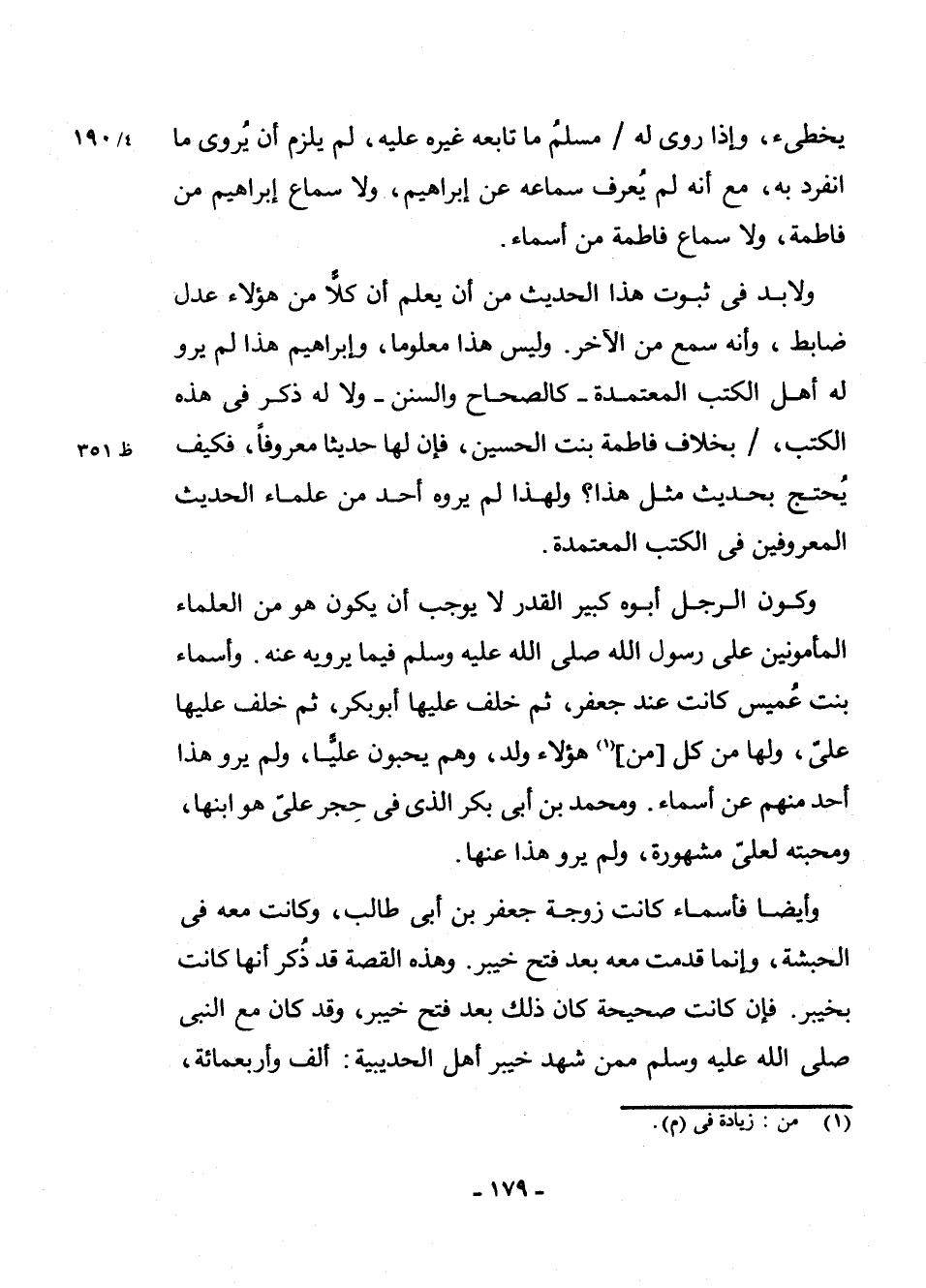 وَأَيْضًا فَأَسْمَاءُ كَانَتْ زَوْجَةَ جَعْفَرِ بْنِ أَبِي طَالِبٍ، وَكَانَتْ مَعَهُ فِي الْحَبَشَةِ، وَإِنَّمَا قَدِمَتْ مَعَهُ بَعْدَ فَتْحِ خَيْبَرَ. وَهَذِهِ الْقِصَّةُ قَدْ ذُكِرَ أَنَّهَا كَانَتْ بِخَيْبَرَ، فَإِنْ كَانَتْ صَحِيحَةً كَانَ ذَلِكَ بَعْدَ فَتْحِ خَيْبَرَ، وَقَدْ كَانَ مَعَ النَّبِيِّ - صَلَّى اللَّهُ عَلَيْهِ وَسَلَّمَ - مِمَّنْ شَهِدَ خَيْبَرَ أَهْلُ الْحُدَيْبِيَةِ: أَلْفٌ وَأَرْبَعُمِائَةٍ،