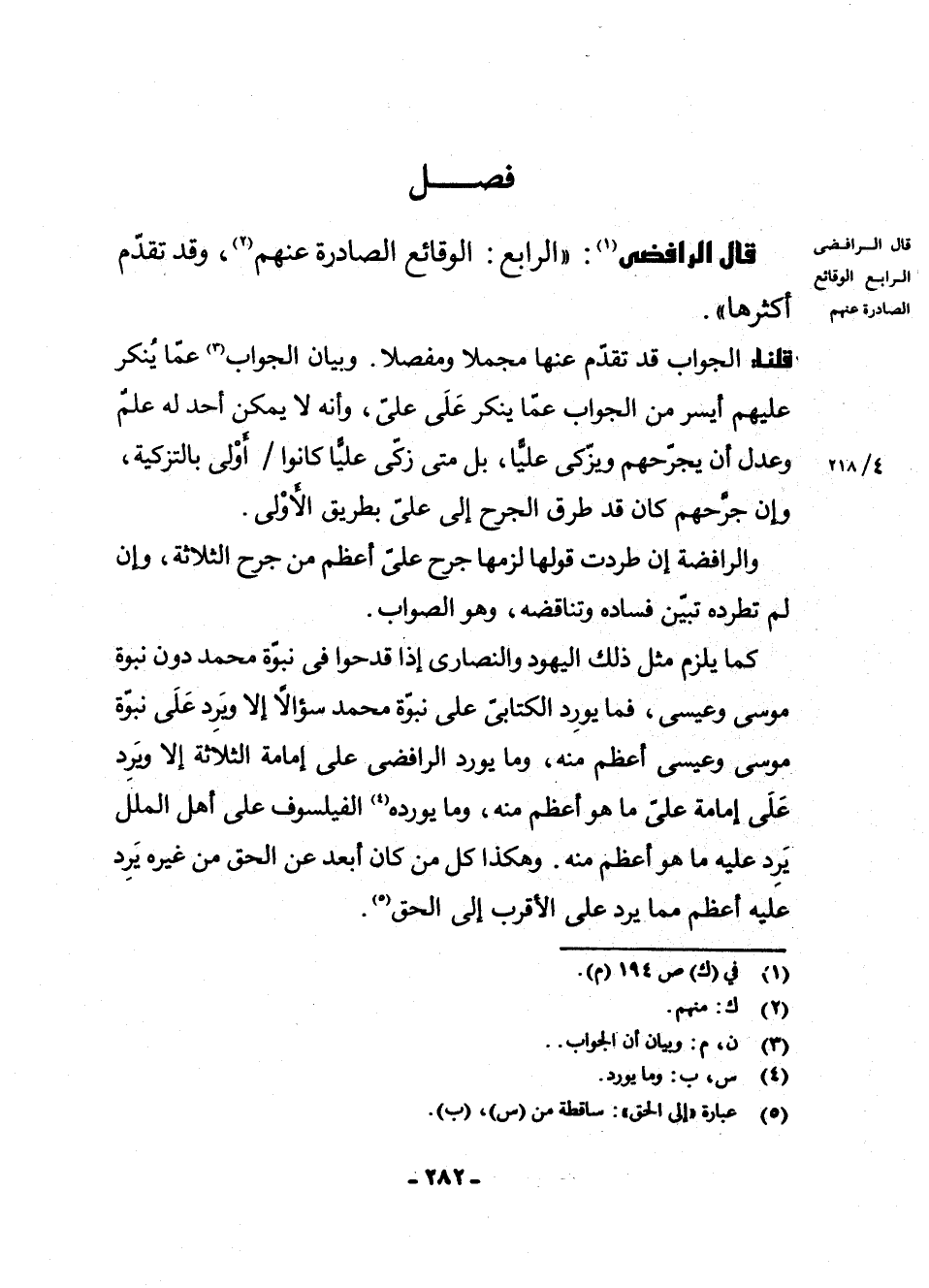 [فصل قال الرافضي الرابع الوقائع الصادرة عنهم]