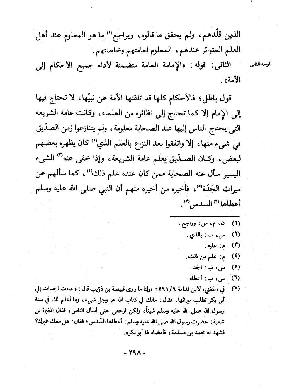 (¬7) فِي الْمُغْنِي لِابْنِ قُدَامَةَ 6/261 وَلَنَا مَا رَوَى قَبِيصَةُ بْنُ ذُؤَيْبٍ قَالَ: " جَاءَتِ الْجَدَّاتُ إِلَى أَبِي بَكْرٍ تَطْلُبُ مِيرَاثَهَا، فَقَالَ: مَا لَكِ فِي كِتَابِ اللَّهِ - عَزَّ وَجَلَّ - شَيْءٌ، وَمَا أَعْلَمُ لَكِ فِي سُنَّةِ رَسُولِ اللَّهِ - صَلَّى اللَّهُ عَلَيْهِ وَسَلَّمَ - شَيْئًا وَلَكِنِ ارْجِعِي حَتَّى أَسْأَلَ النَّاسَ، فَقَالَ الْمُغِيرَةُ بْنُ شُعْبَةَ: حَضَرْتُ رَسُولَ اللَّهِ - صَلَّى اللَّهُ عَلَيْهِ وَسَلَّمَ -: أَعْطَاهَا السُّدُسَ ; فَقَالَ: هَلْ مَعَكَ غَيْرُكَ؟ فَشَهِدَ لَهُ مُحَمَّدُ بْنُ مَسْلَمَةَ فَأَمْضَاهُ لَهَا أَبُو بَكْرٍ ".