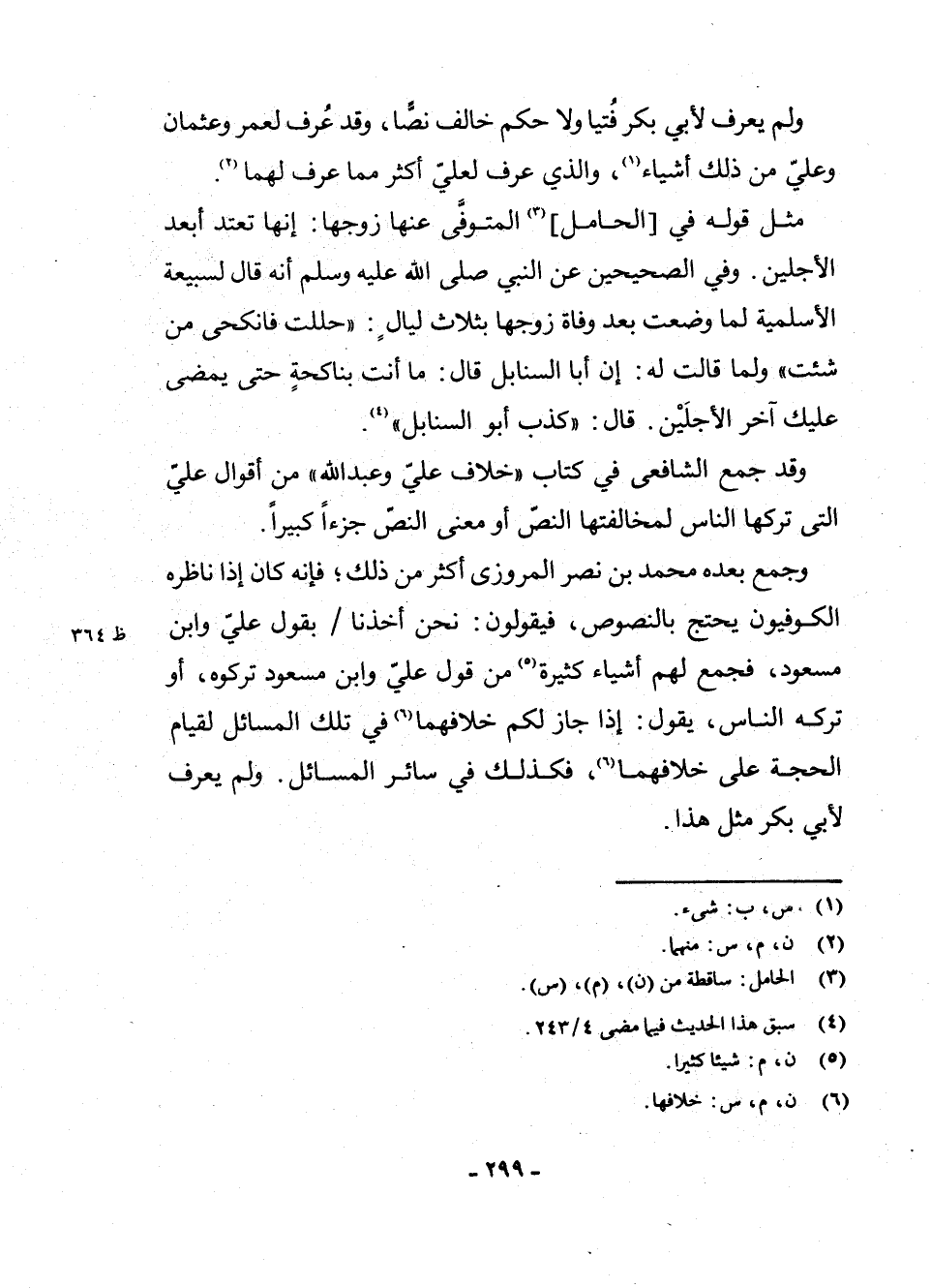 وَقَدْ جَمَعَ الشَّافِعِيُّ فِي كِتَابِ " خِلَافُ عَلِيٍّ وَعَبْدِ اللَّهِ " مِنْ أَقْوَالِ عَلِيٍّ الَّتِي تَرَكَهَا النَّاسُ لِمُخَالَفَتِهَا النَّصَّ أَوْ مَعْنَى النَّصِّ جُزْءًا كَبِيرًا.