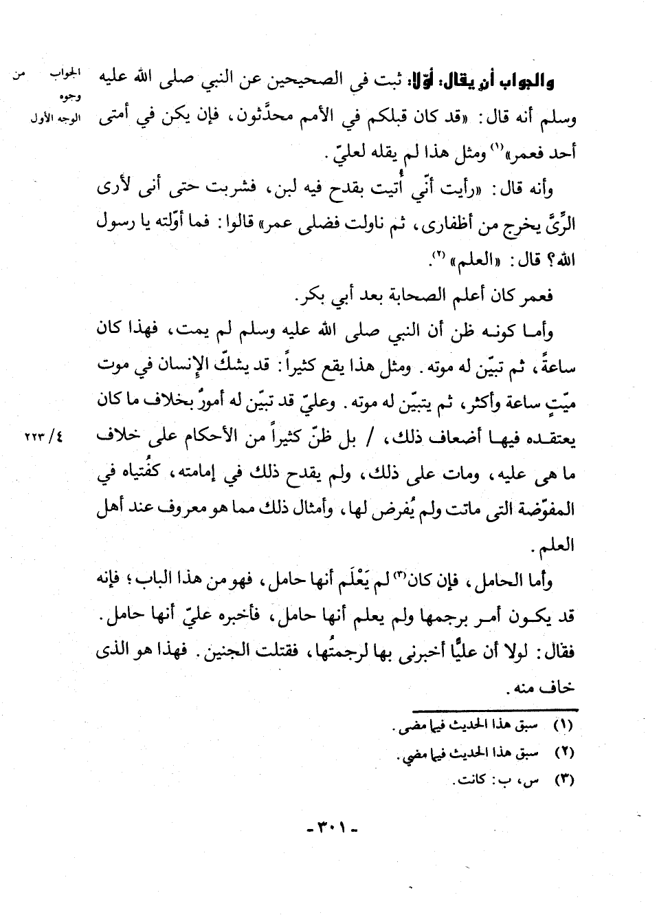 وَأَمَّا الْحَامِلُ، فَإِنْ كَانَ (¬3) لَمْ يَعْلَمْ أَنَّهَا حَامِلٌ فَهُوَ مِنْ هَذَا الْبَابِ، فَإِنَّهُ قَدْ يَكُونُ أَمَرَ بِرَجْمِهَا وَلَمْ يَعْلَمْ أَنَّهَا حَامِلٌ، فَأَخْبَرَهُ عَلِيٌّ أَنَّهَا حَامِلٌ، فَقَالَ: لَوْلَا أَنَّ عَلِيًّا أَخْبَرَنِي بِهَا لَرَجَمْتُهَا، فَقَتَلْتُ الْجَنِينَ، فَهَذَا هُوَ الَّذِي خَافَ مِنْهُ.