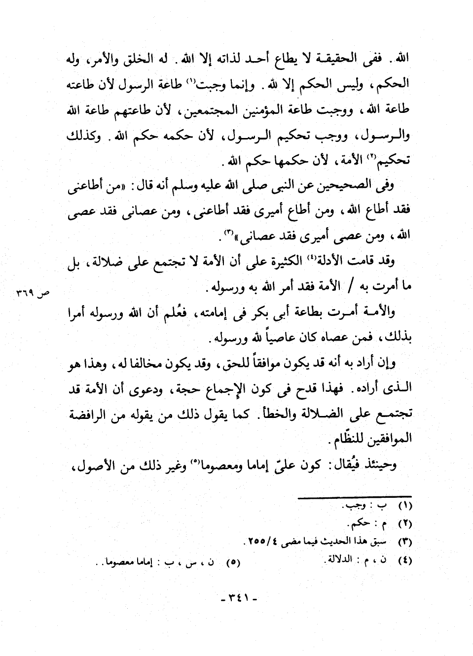 (¬5) ن، س، ب: إِمَامًا مَعْصُومًا