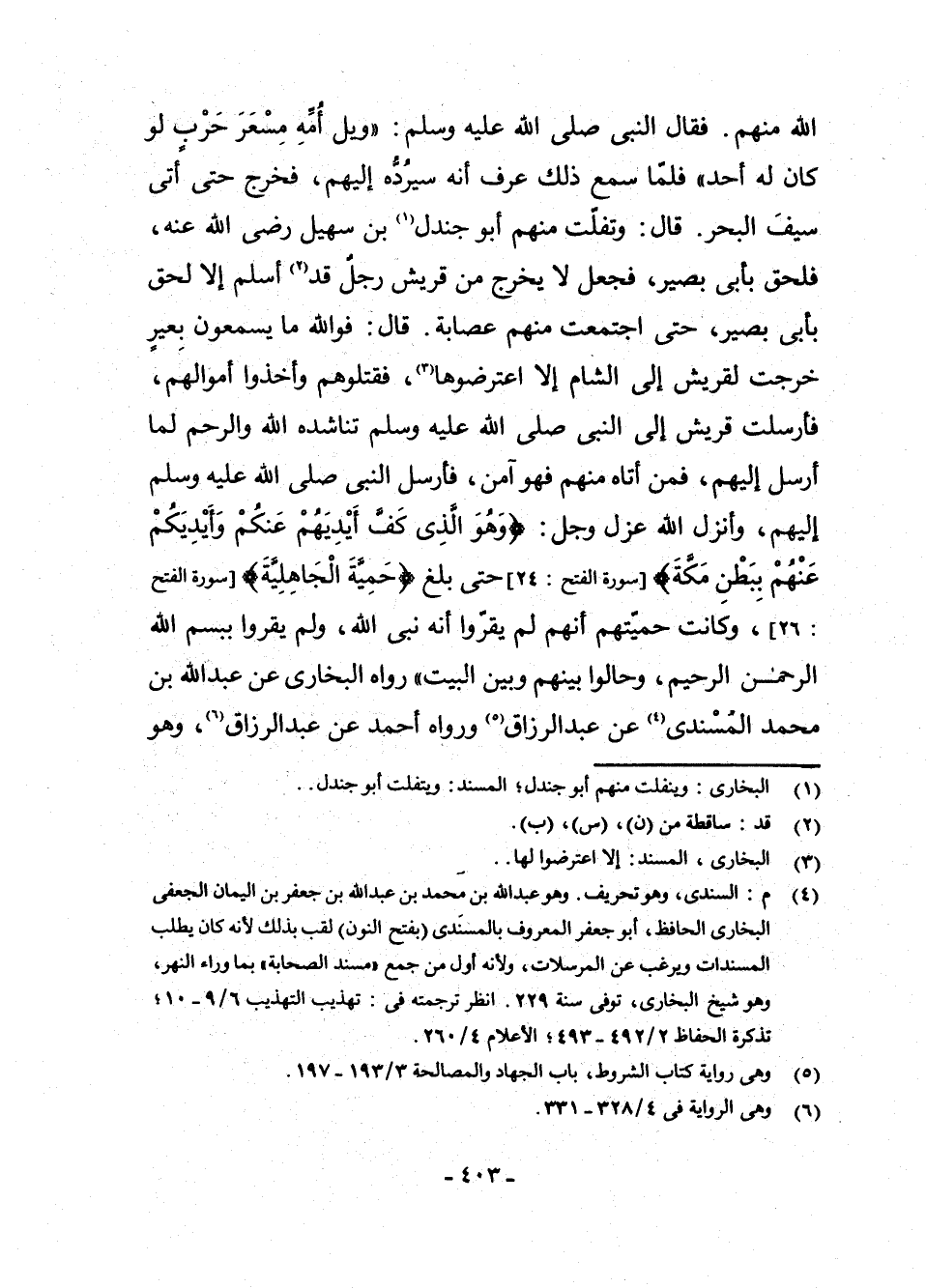 (¬5) وَهِيَ رِوَايَةُ كِتَابِ الشُّرُوطِ، بَابُ الْجِهَادِ وَالْمُصَالَحَةِ 3/193 - 197.