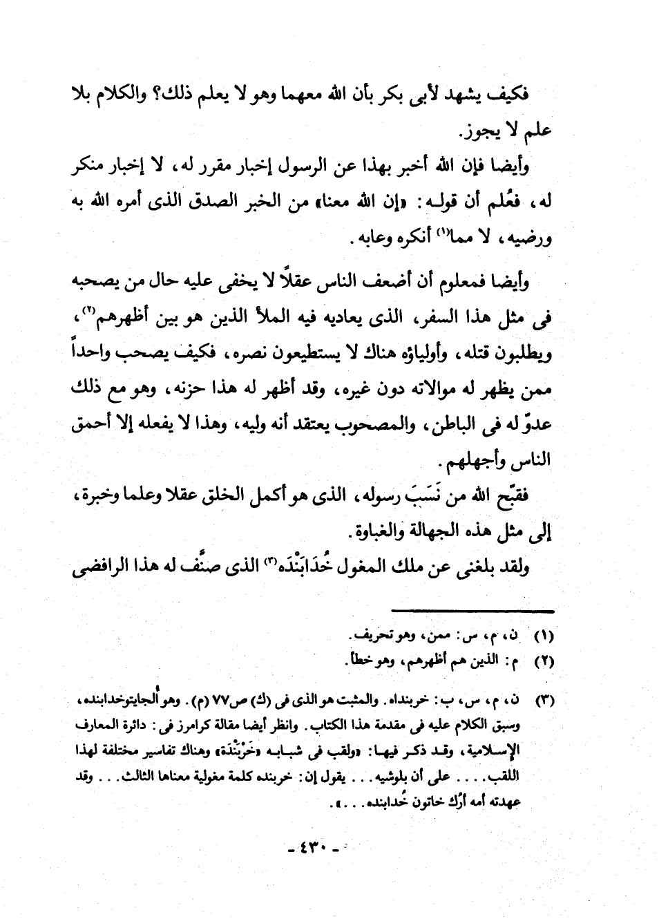 وَلَقَدْ بَلَغَنِي عَنْ مَلِكِ الْمَغُولِ خُدَابَنْدَهْ (¬3) الَّذِي صَنَّفَ لَهُ هَذَا الرَّافِضِيُّ