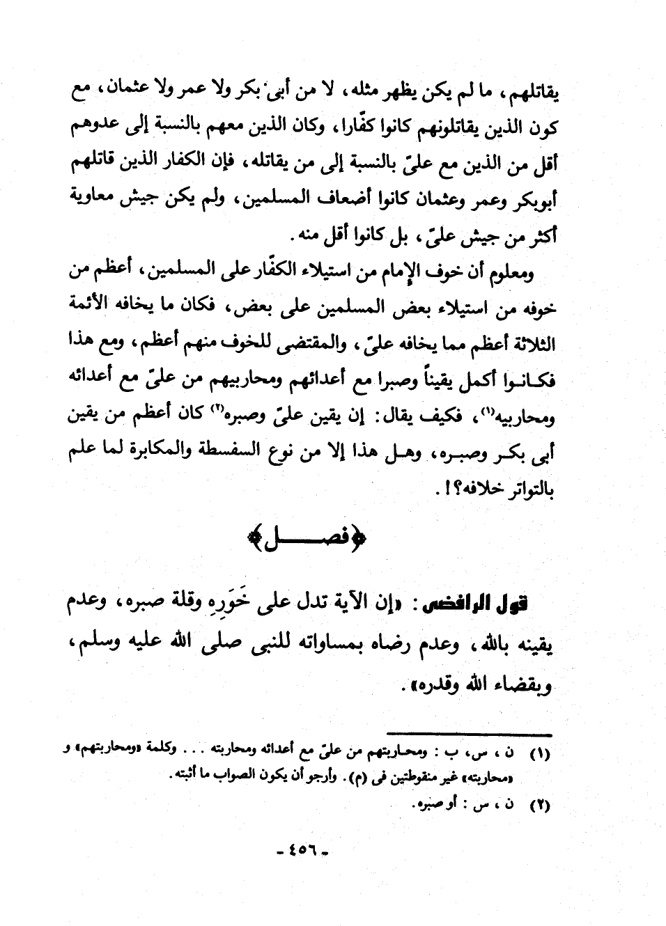 (¬1) ن، س، ب: وَمُحَارَبَتِهِمْ مِنْ عَلِيٍّ مَعَ أَعْدَائِهِ وَمُحَارَبَتِهِ. . . وَكَلِمَةُ " وَمُحَارَبَتِهِمْ " وَ " مُحَارَبَتِهِ " غَيْرُ مَنْقُوطَتَيْنِ فِي (م) . وَأَرْجُو أَنْ يَكُونَ الصَّوَابُ مَا أَثْبَتُّهُ