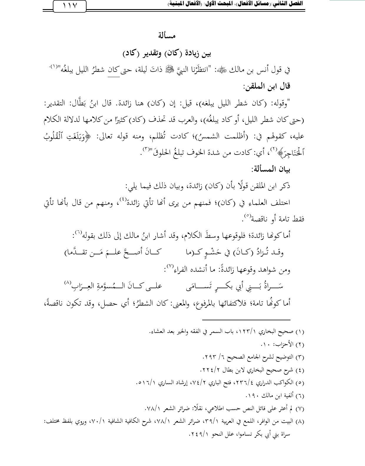 كتاب المسائل النحوية في كتاب التوضيح لشرح الجامع الصحيح