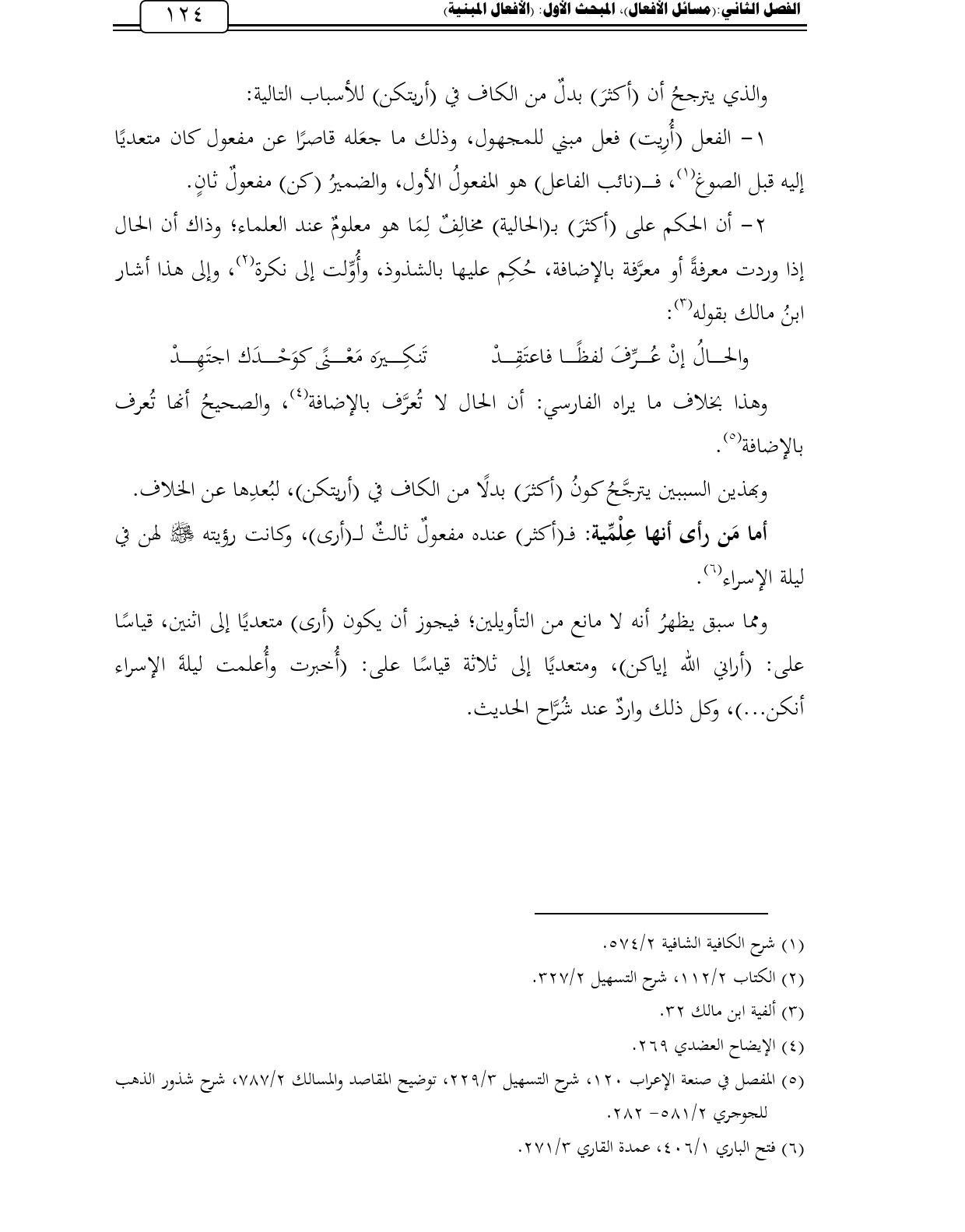 أما مَن رأى أنها عِلْمِّية: فـ (أكثر) عنده مفعولٌ ثالثٌ لـ (أرى)، وكانت رؤيته - صلى الله عليه وسلم - لهن في ليلة الإسراء (¬6).