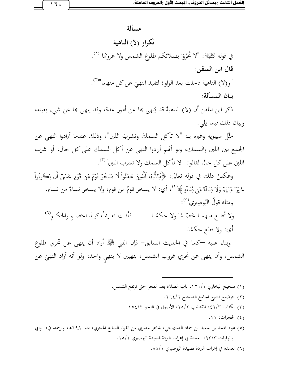 (¬5) هو: محمد بن سعيد بن حماد الصنهاجي، شاعر مصري من القرن السابع الهجري، ت: 698 هـ، وترجمته في: الوافي بالوفيات 3/ 93، العمدة في إعراب البردة قصيدة البوصيري 1/ 15.