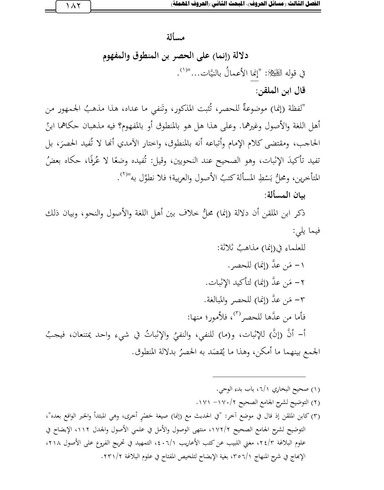 دلالة (إنما) على الحصر بن المنطوق والمفهوم