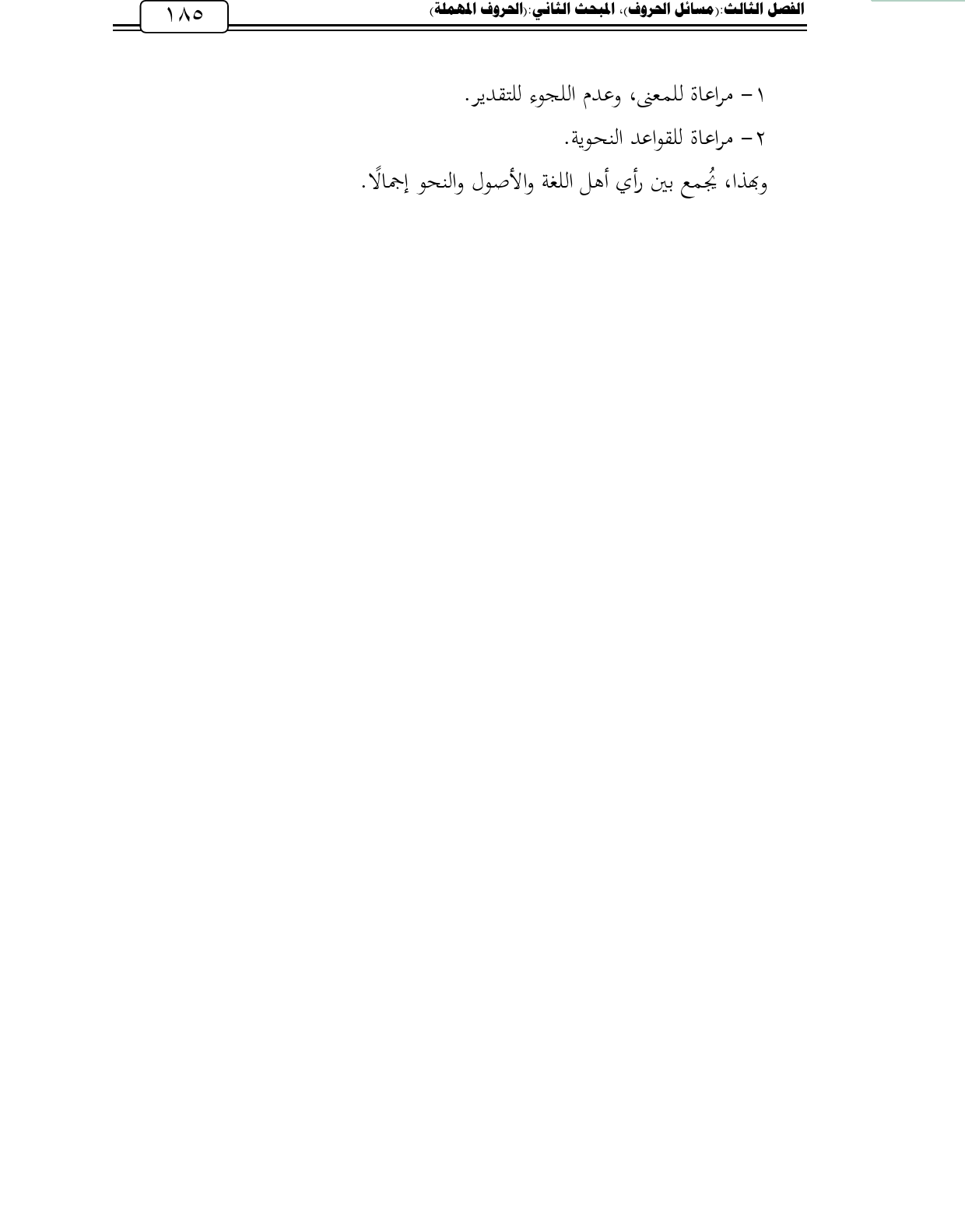 1 - مراعاة للمعنى، وعدم اللجوء للتقدير.