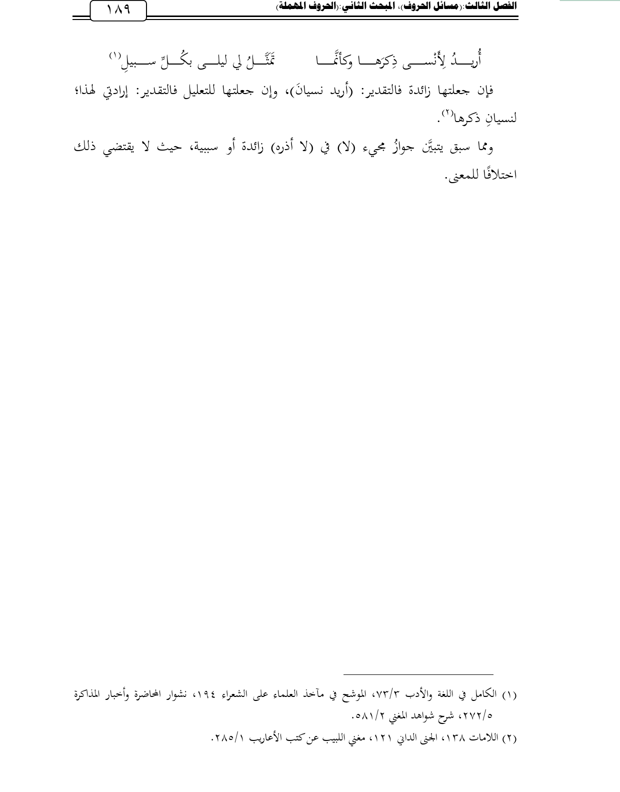 (¬2) اللامات 138، الجنى الداني 121، مغني اللبيب عن كتب الأعاريب 1/ 285.