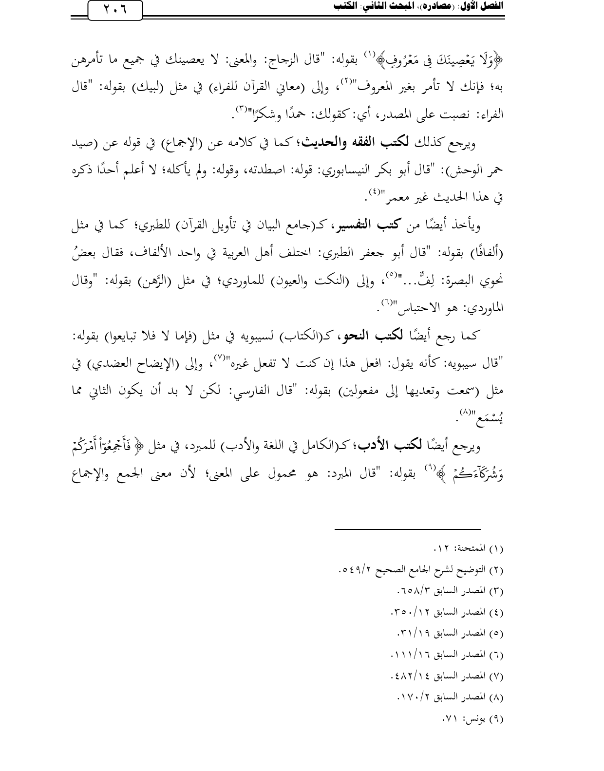 كما رجع أيضًا لكتب النحو، كـ (الكتاب) لسيبويه في مثل (فإما لا فلا تبايعوا) بقوله: "قال سيبويه: كأنه يقول: افعل هذا إن كنت لا تفعل غيره" (¬7)، وإلى (الإيضاح العضدي) في مثل (سمعت وتعديها إلى مفعولين) بقوله: "قال الفارسي: لكن لا بد أن يكون الثاني مما يُسْمَع" (¬8).