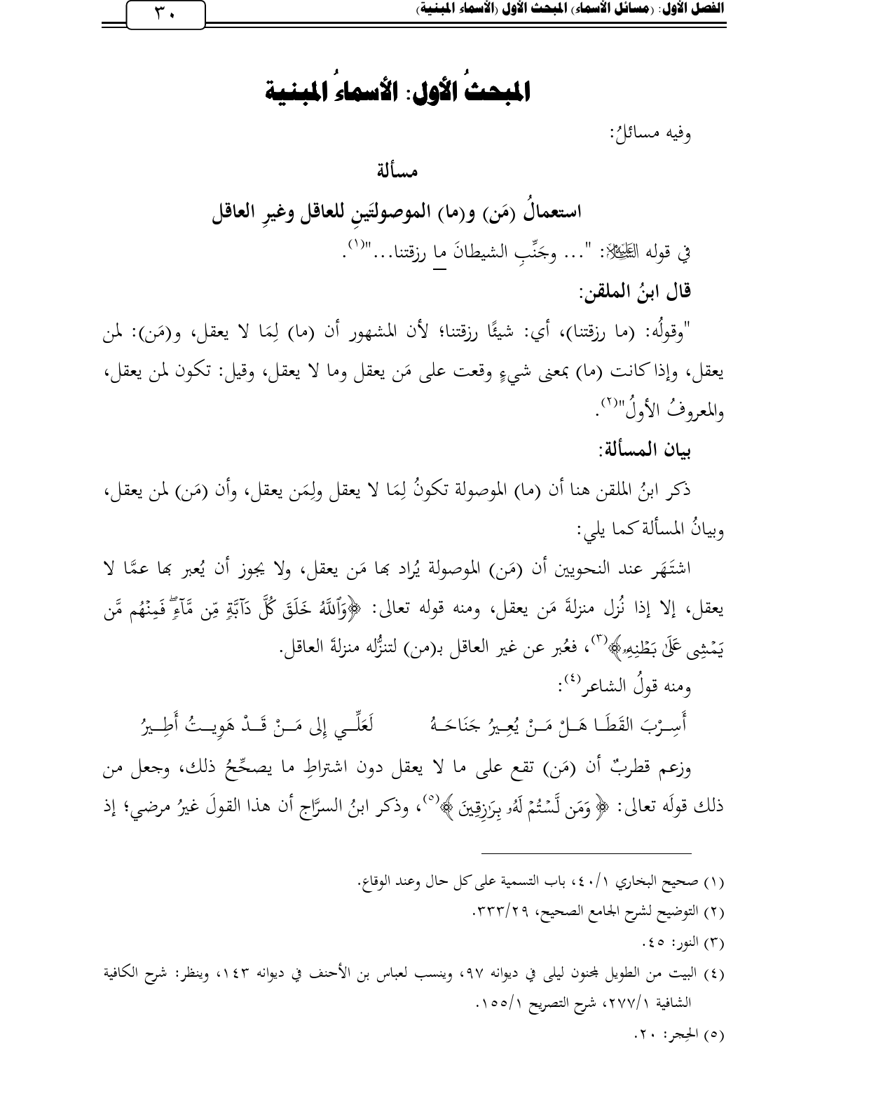 كتاب المسائل النحوية في كتاب التوضيح لشرح الجامع الصحيح