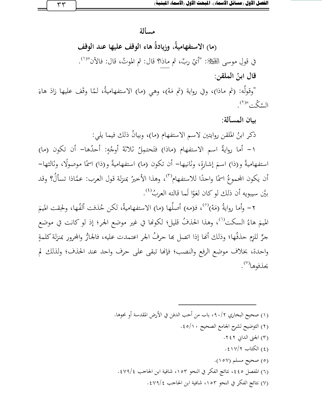 كتاب المسائل النحوية في كتاب التوضيح لشرح الجامع الصحيح