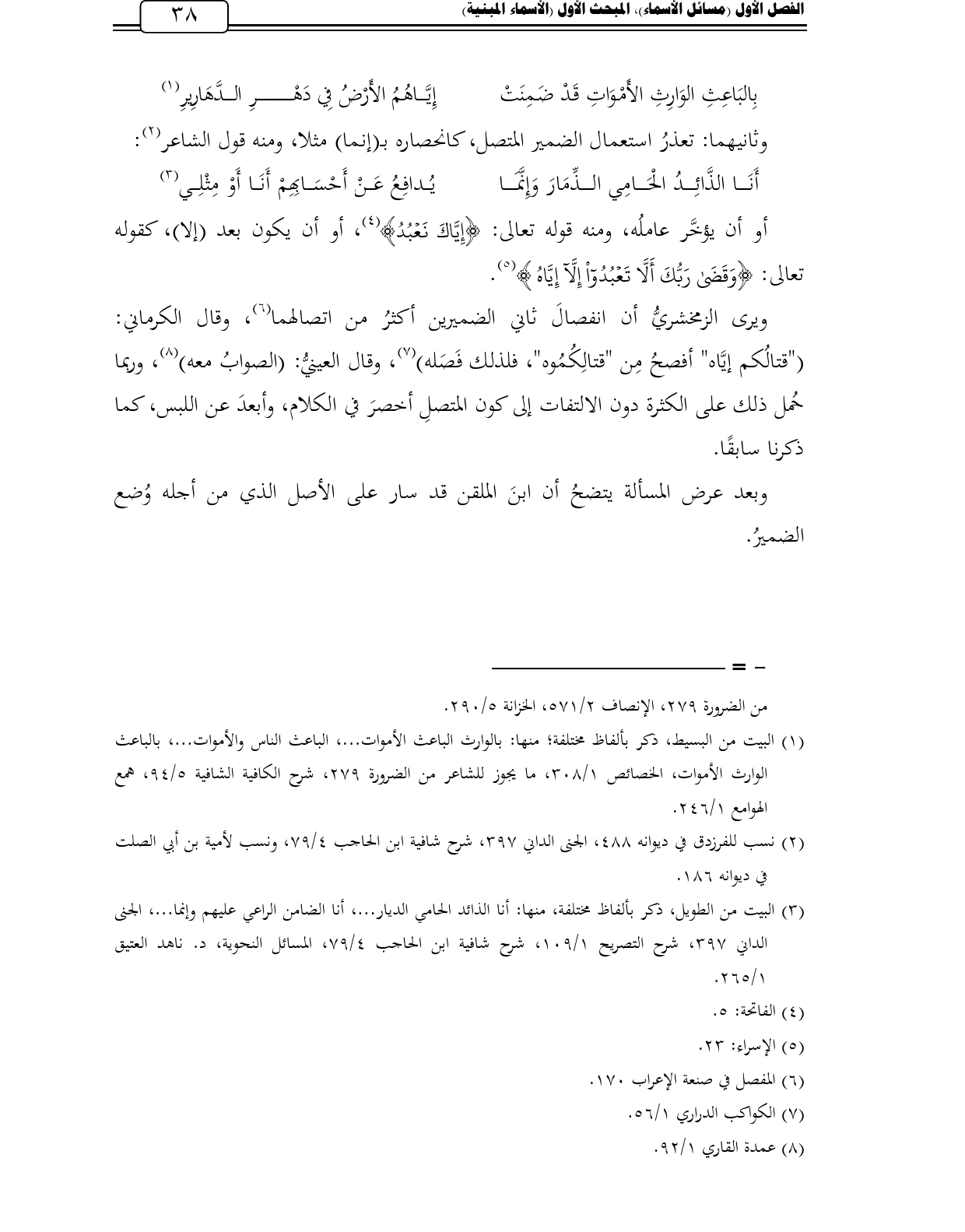 وبعد عرض المسألة يتضحُ أن ابنَ الملقن قد سار على الأصل الذي من أجله وُضع الضميرُ.