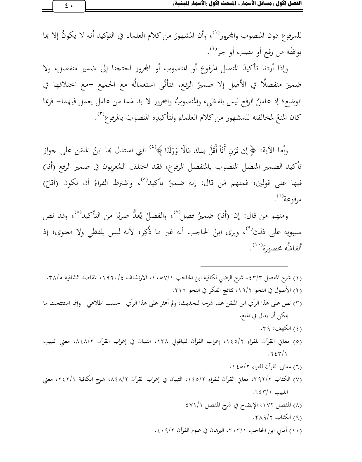 (¬1) شرح المفصل 3/ 43، شرح الرضي لكافية ابن الحاجب 1/ 1057، الارتشاف 4/ 1960، المقاصد الشافية 5/ 38.