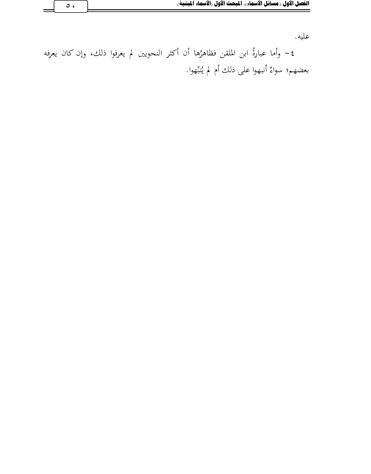4 - وأما عبارةُ ابن الملقن فظاهرُها أن أكثر النحويين لم يعرفوا ذلك، وإن كان يعرفه بعضهم؛ سواءٌ أنبهوا على ذلك أم لم يُنبِّهوا.