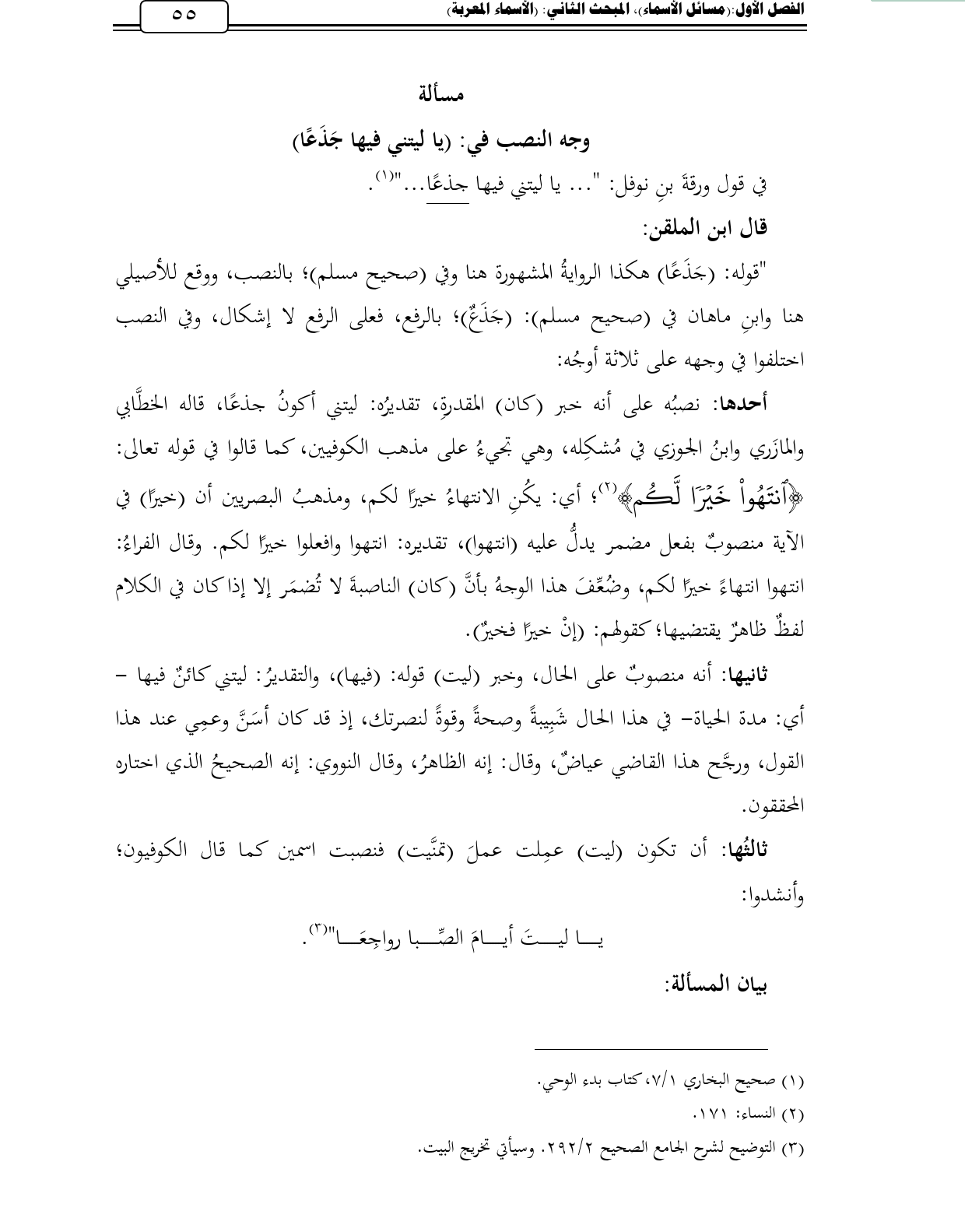 كتاب المسائل النحوية في كتاب التوضيح لشرح الجامع الصحيح