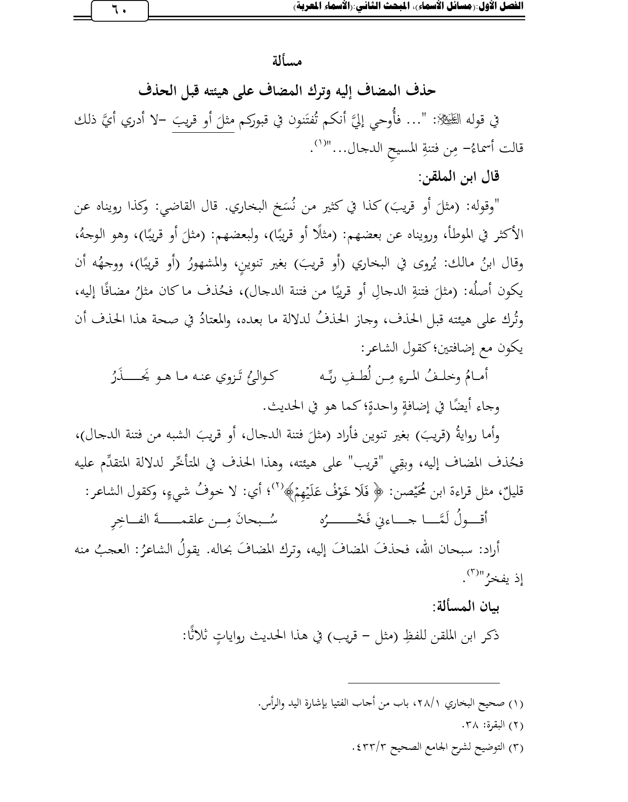كتاب المسائل النحوية في كتاب التوضيح لشرح الجامع الصحيح