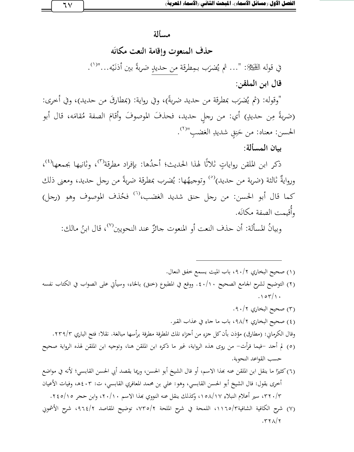 كتاب المسائل النحوية في كتاب التوضيح لشرح الجامع الصحيح