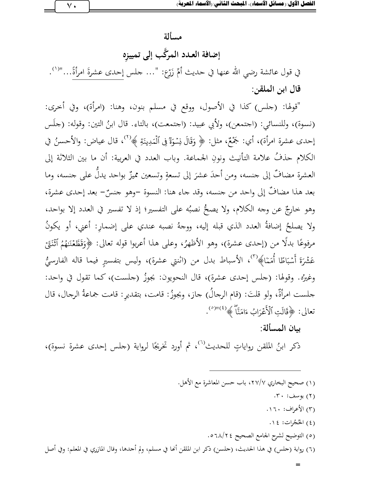 كتاب المسائل النحوية في كتاب التوضيح لشرح الجامع الصحيح