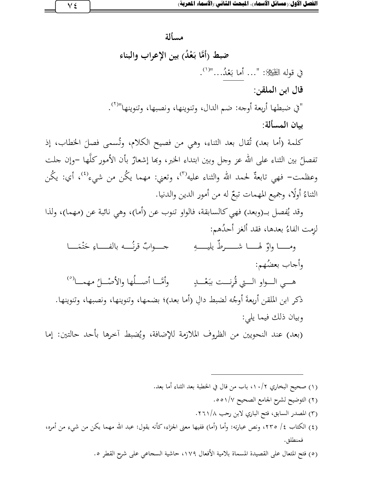 (¬5) فتح المتعال على القصيدة المسماة بلامية الأفعال 179، حاشية السجاعي على شرح القطر 5.