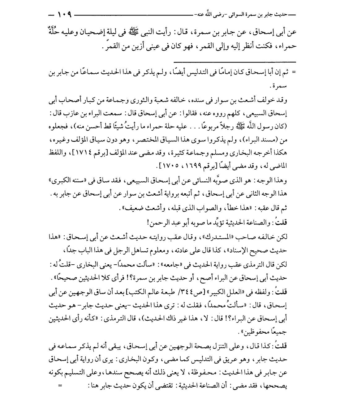 لكن قال الترمذى عقب رواية الحديث في "جامعه": "سألت محمدًا - يعنى البخارى - قلتُ له: حديث أبى إسحاق عن البراء أصح، أو حديث جابر بن سمرة؟! فرأى كلا الحديثين صحيحًا".