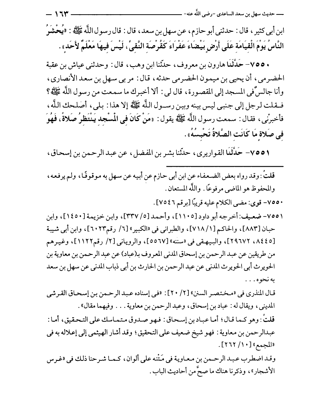 = قلتُ: وقد رواه بعض الضعفاء عن ابن أبى حازم عن أبيه عن سهل به موقوفًا، ولم يرفعه، والمحفوظ هو الماضى مرفوعًا. واللَّه المستعان.