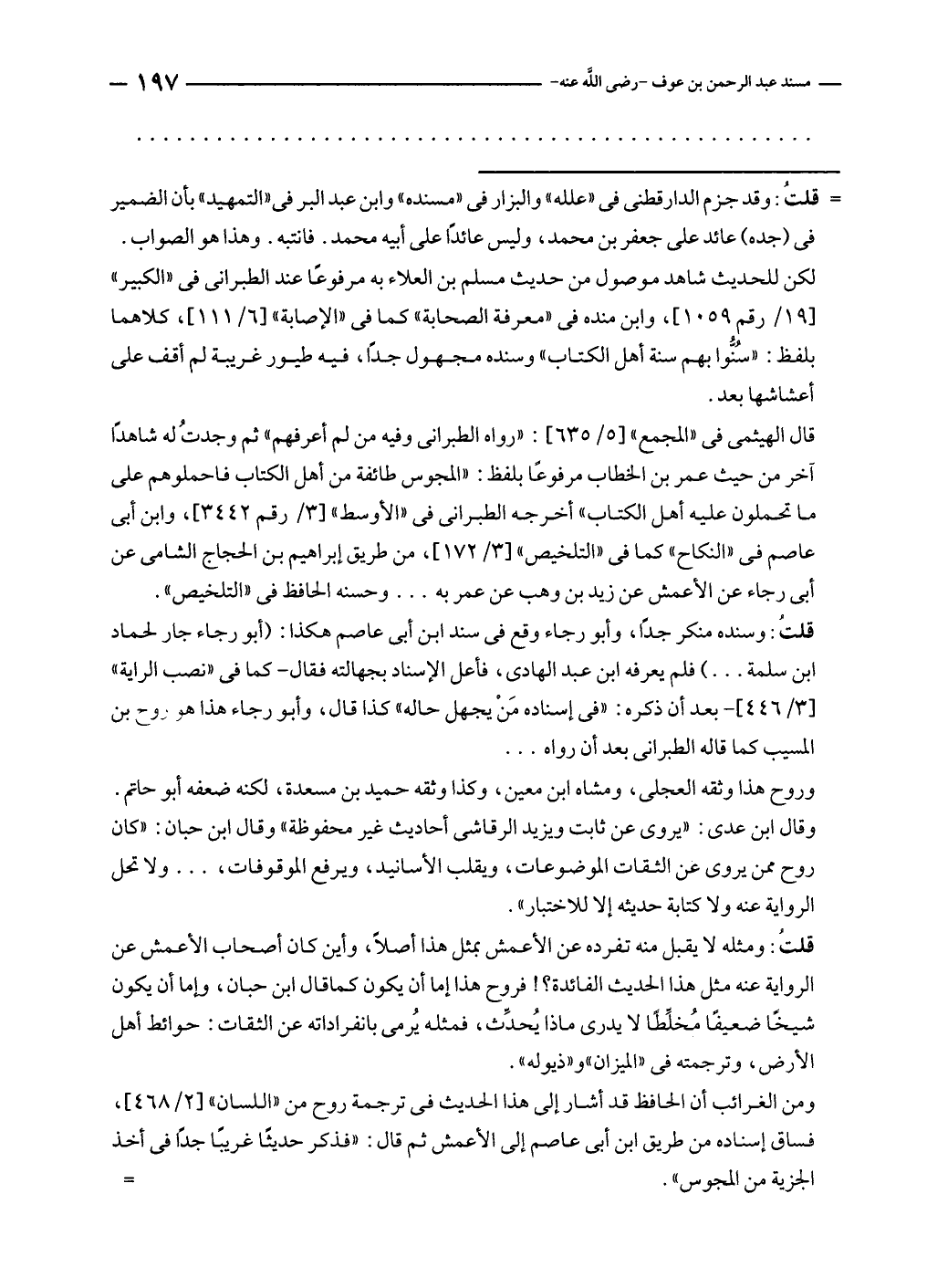 ومن الغرائب أن الحافظ قد أشار إلى هذا الحديث في ترجمة روح من "اللسان" [٢/ ٤٦٨]، فساق إسناده من طريق ابن أبى عاصم إلى الأعمش ثم قال: "فذكر حديثًا غريبًا جدًّا في أخذ الجزية من المجوس". =