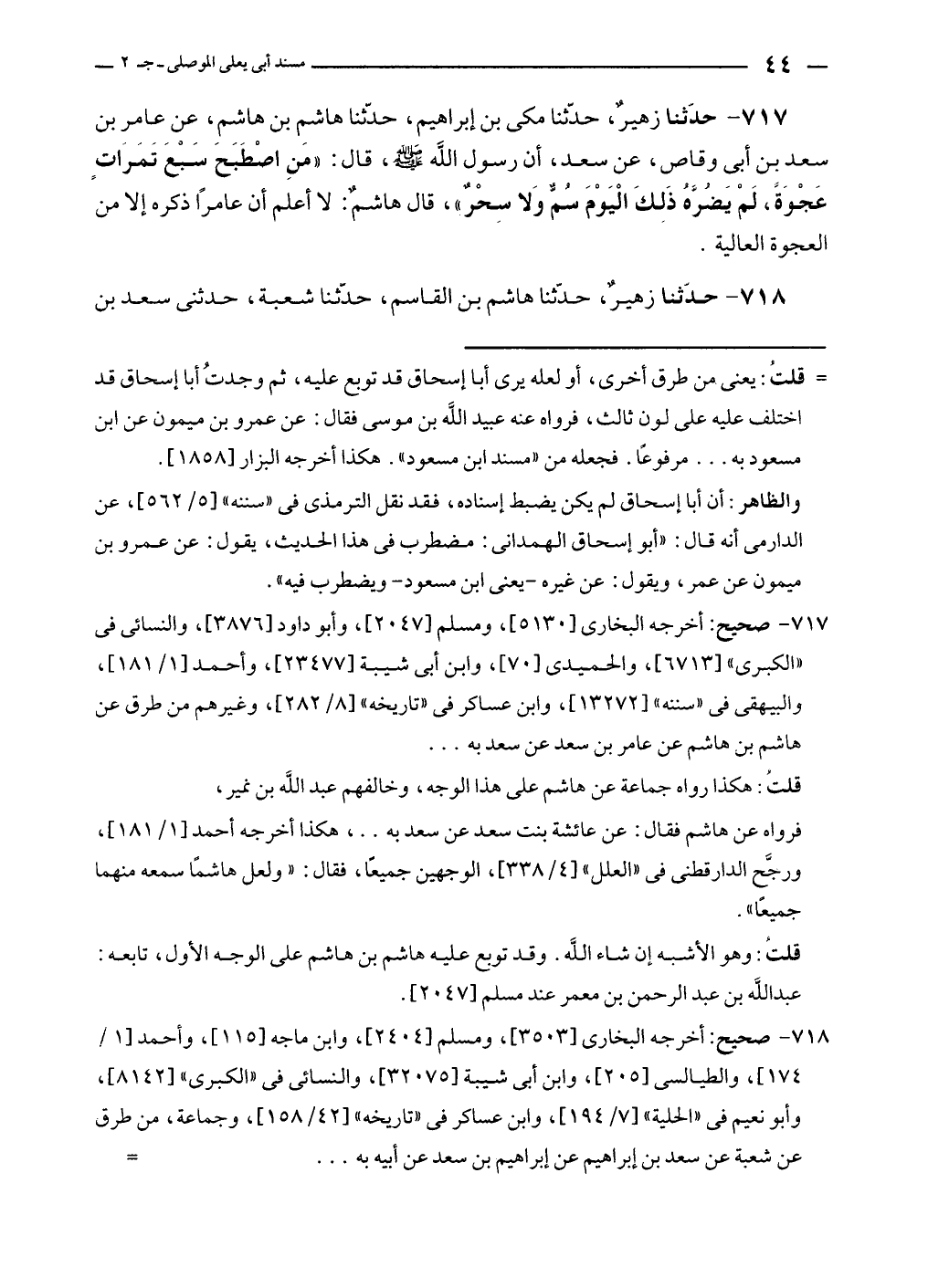 ٧١٨ - حدّثنا زهيرٌ، حدّثنا هاشم بن القاسم، حدّثنا شعبة، حدثنى سعد بن