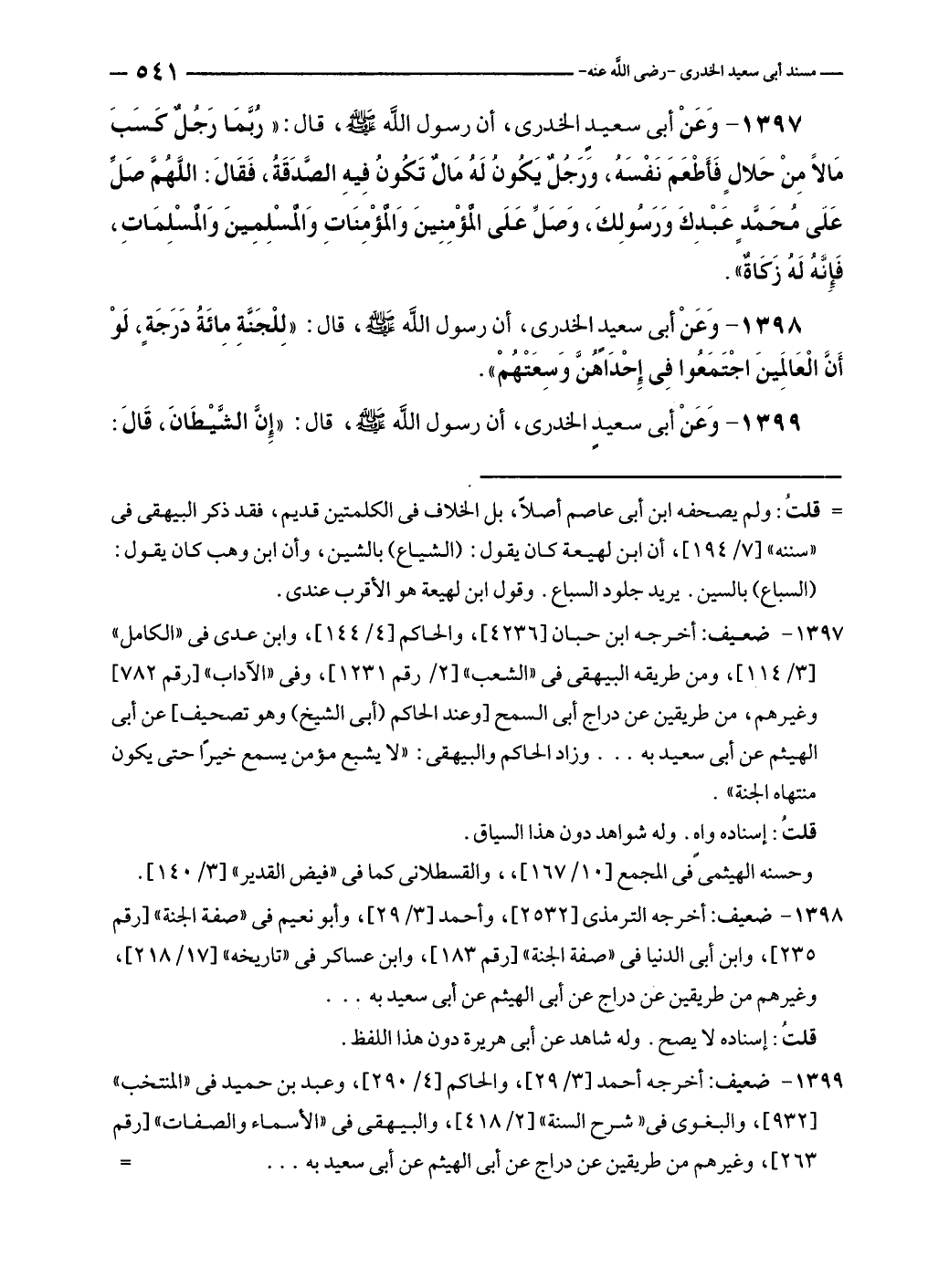 ١٣٩٨ - ضعيف: أخرجه الترمذى [٢٥٣٢]، وأحمد [٣/ ٢٩]، وأبو نعيم في "صفة الجنة" [رقم ٢٣٥]، وابن أبي الدنيا في "صفة الجنة" [رقم ١٨٣]، وابن عساكر في "تاريخه" [١٧/ ٢١٨]، وغيرهم من طريقين عن دراج عن أبي الهيثم عن أبي سعيد به ...