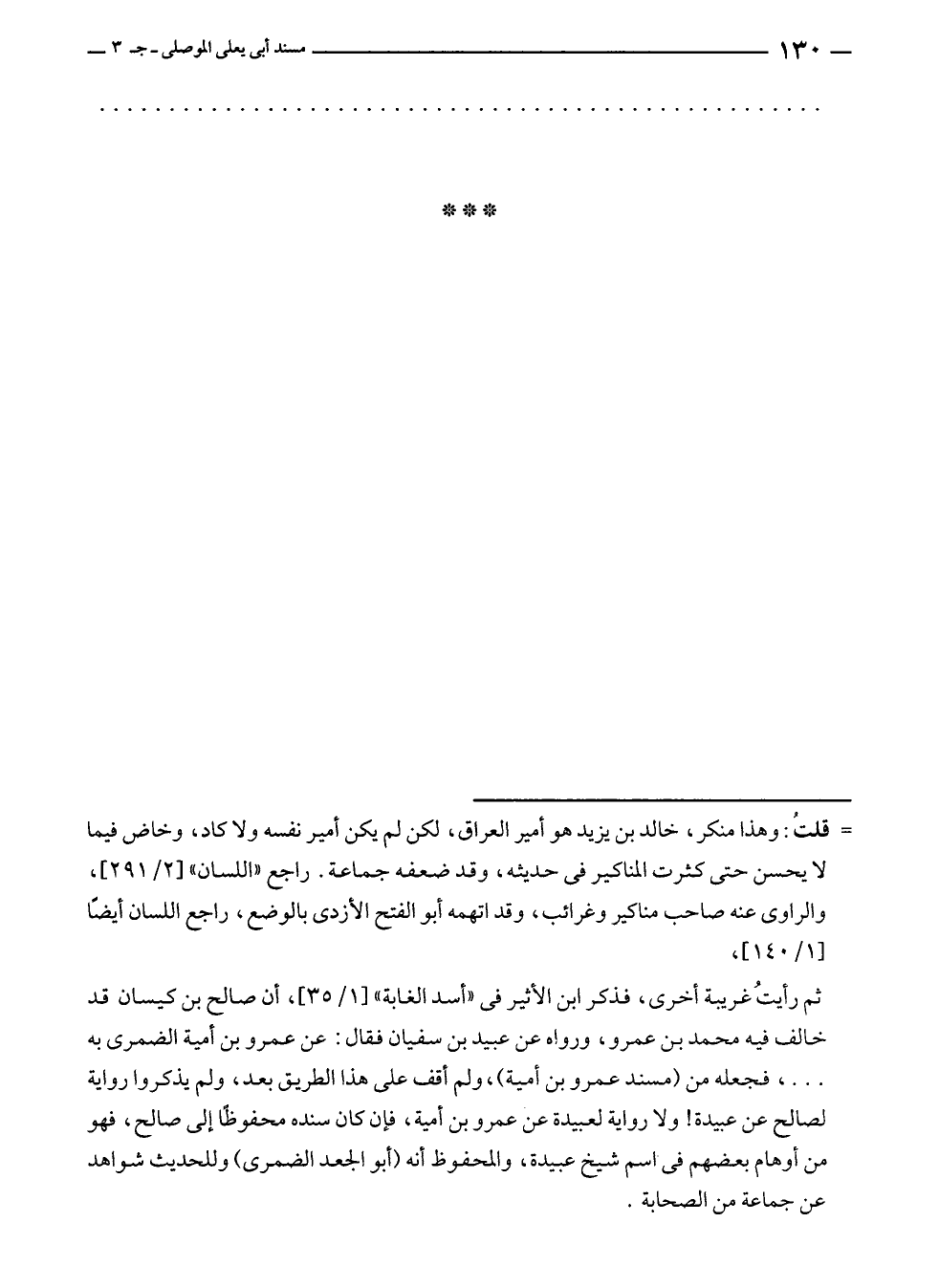 ثم رأيتُ غريبة أخرى، فذكر ابن الأثير في "أسد الغابة" [١/ ٣٥]، أن صالح بن كيسان قد خالف فيه محمد بن عمرو، ورواه عن عبيد بن سفيان فقال: عن عمرو بن أمية الضمرى به ... ، فجعله من (مسند عمرو بن أمية)، ولم أقف على هذا الطريق بعد، ولم يذكروا رواية لصالح عن عبيدة! ولا رواية لعبيدة عن عمرو بن أمية، فإن كان سنده محفوظًا إلى صالح، فهو من أوهام بعضهم في اسم شيخ عبيدة، والمحفوظ أنه (أبو الجعد الضمرى) وللحديث شواهد عن جماعة من الصحابة.