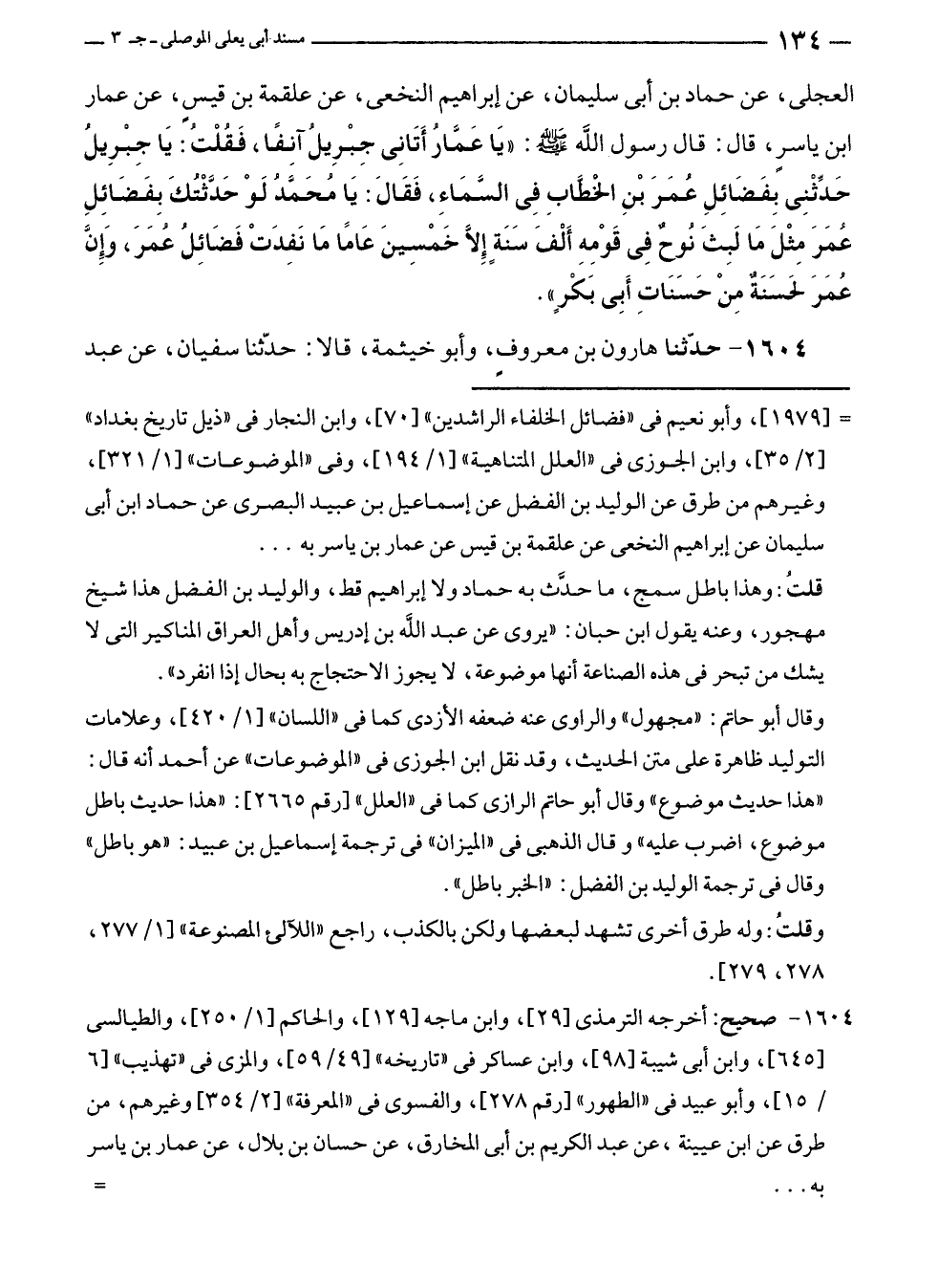 قلتُ: وهذا باطل سمج، ما حدَّث به حماد ولا إبراهيم قط، والوليد بن الفضل هذا شيخ مهجور، وعنه يقول ابن حبان: (يروى عن عبد الله بن إدريس وأهل العراق المناكير التى لا يشك من تبحر في هذه الصناعة أنها موضوعة، لا يجوز الاحتجاج به بحال إذا انفرد".