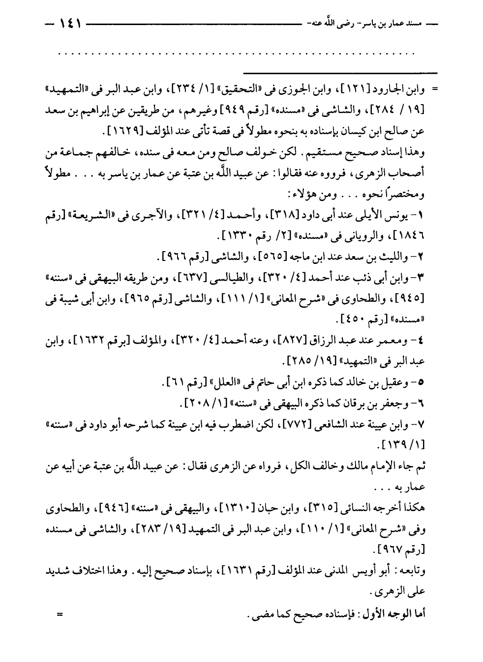 وهذا إسناد صحيح مستقيم. لكن خولف صالح ومن معه في سنده، خالفهم جماعة من أصحاب الزهرى، فرووه عنه فقالوا: عن عبيد الله بن عتبة عن عمار بن ياسر به ... مطولًا ومختصرًا نحوه ... ومن هؤلاء: