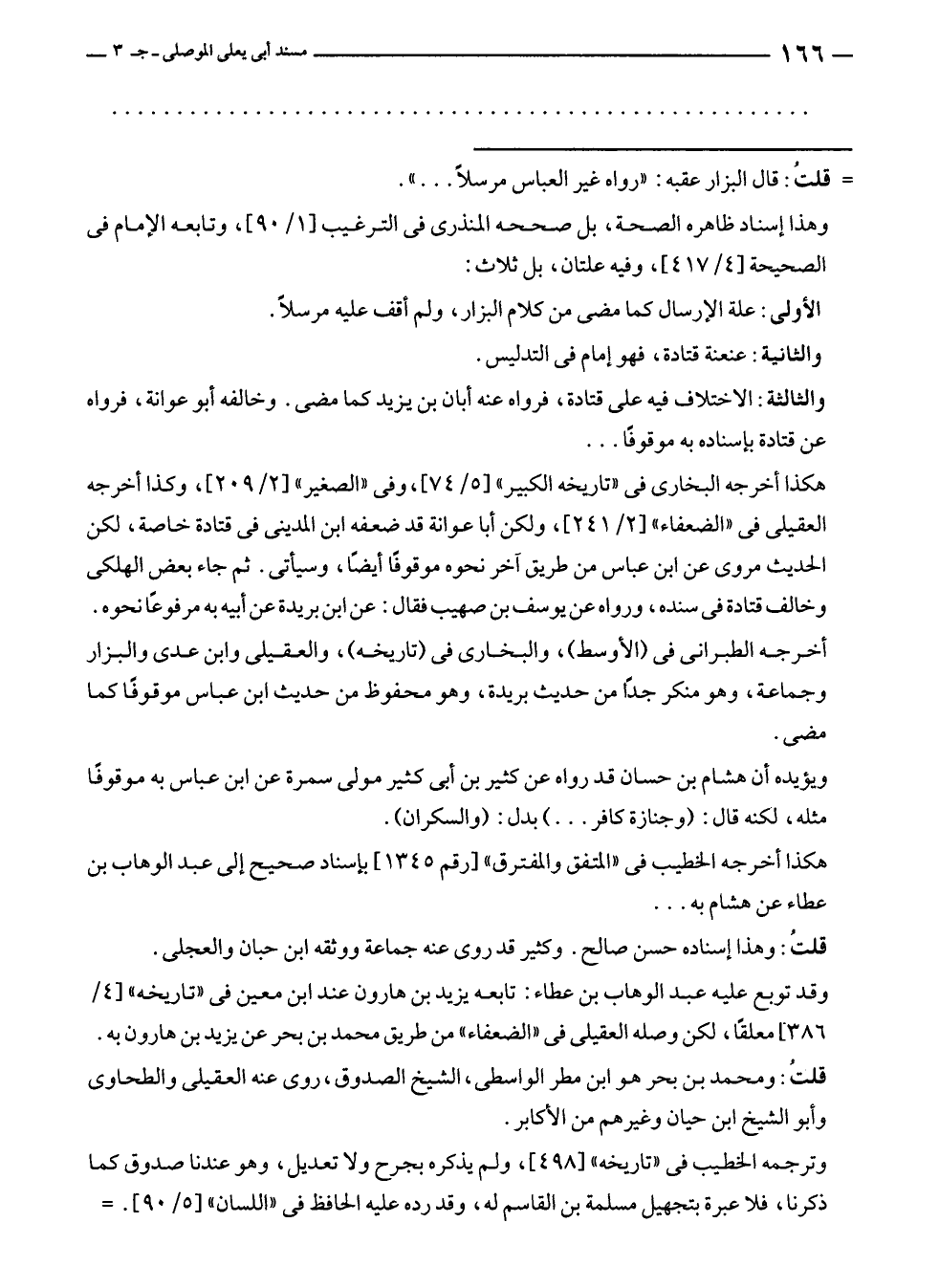 = قلتُ: قال البزار عقبه: "رواه غير العباس مرسلًا ... ".