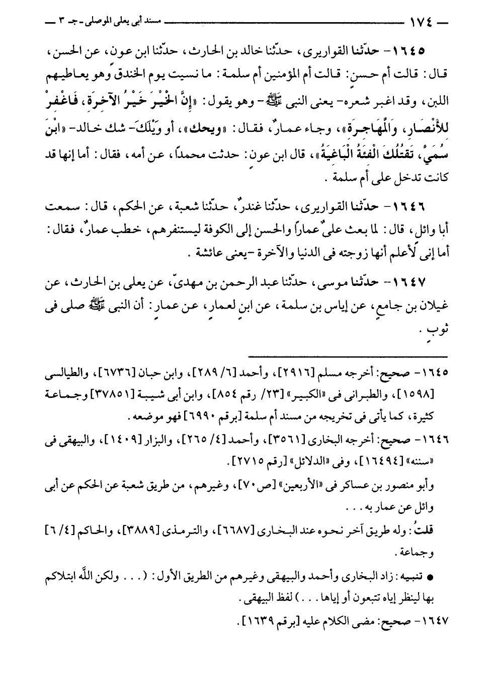 ١٦٤٥ - صحيح: أخرجه مسلم [٢٩١٦]، وأحمد [٦/ ٢٨٩]، وابن حبان [٦٧٣٦]، والطيالسى [١٥٩٨]، والطبرانى في "الكبير" [٢٣/ رقم ٨٥٤]، وابن أبى شيبة [٣٧٨٥١] وجماعة كثيرة، كما يأتى في تخريجه من مسند أم سلمة [برقم ٦٩٩٠] فهو موضعه.