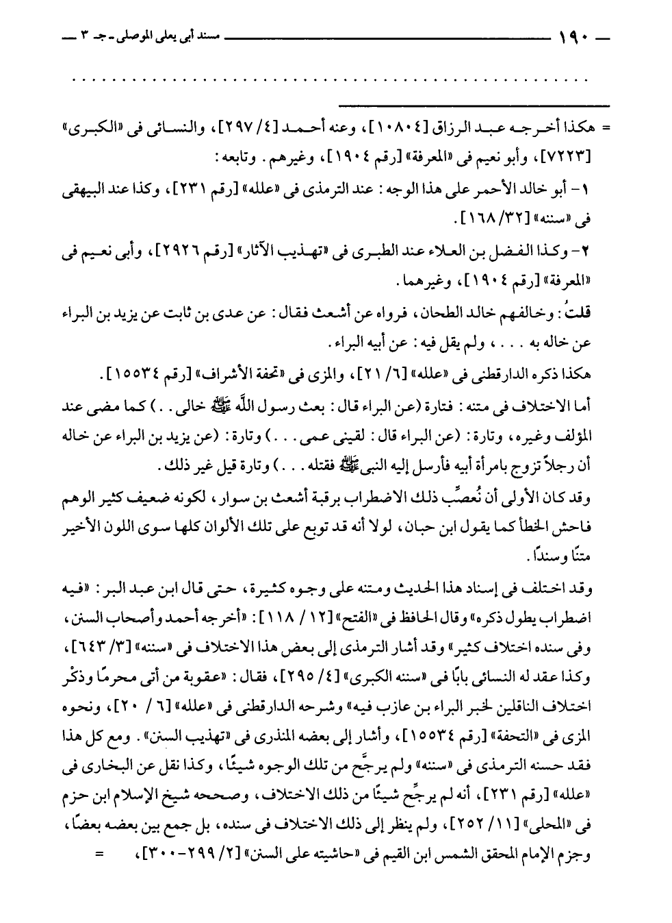 قلتُ: وخالفهم خالد الطحان، فرواه عن أشعث فقال: عن عدى بن ثابت عن يزيد بن البراء عن خاله به ... ، ولم يقل فيه: عن أبيه البراء.