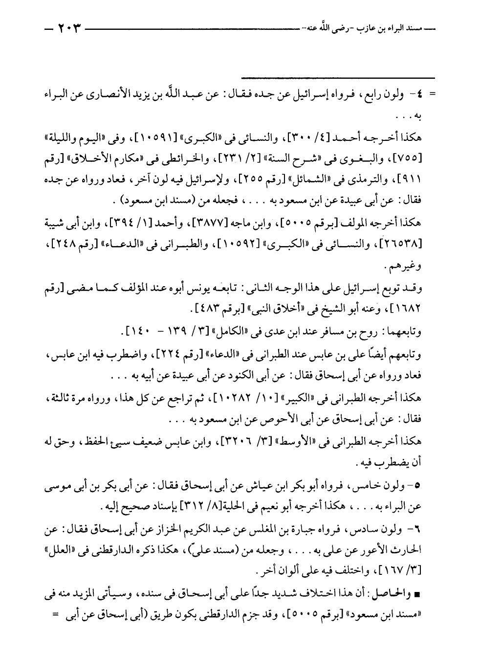 = ٤ - ولون رابع، فرواه إسرائيل عن جده فقال: عن عبد الله بن يزيد الأنصارى عن البراء به ...